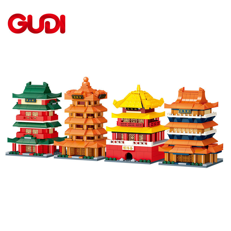 中国风古建筑学校模型摆件 古迪积木节日拼搭街景玩具儿童益智拼装由