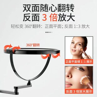 免打孔化妆镜浴室壁挂墙贴酒店双面美容镜伸缩折叠卫生间放大镜C由