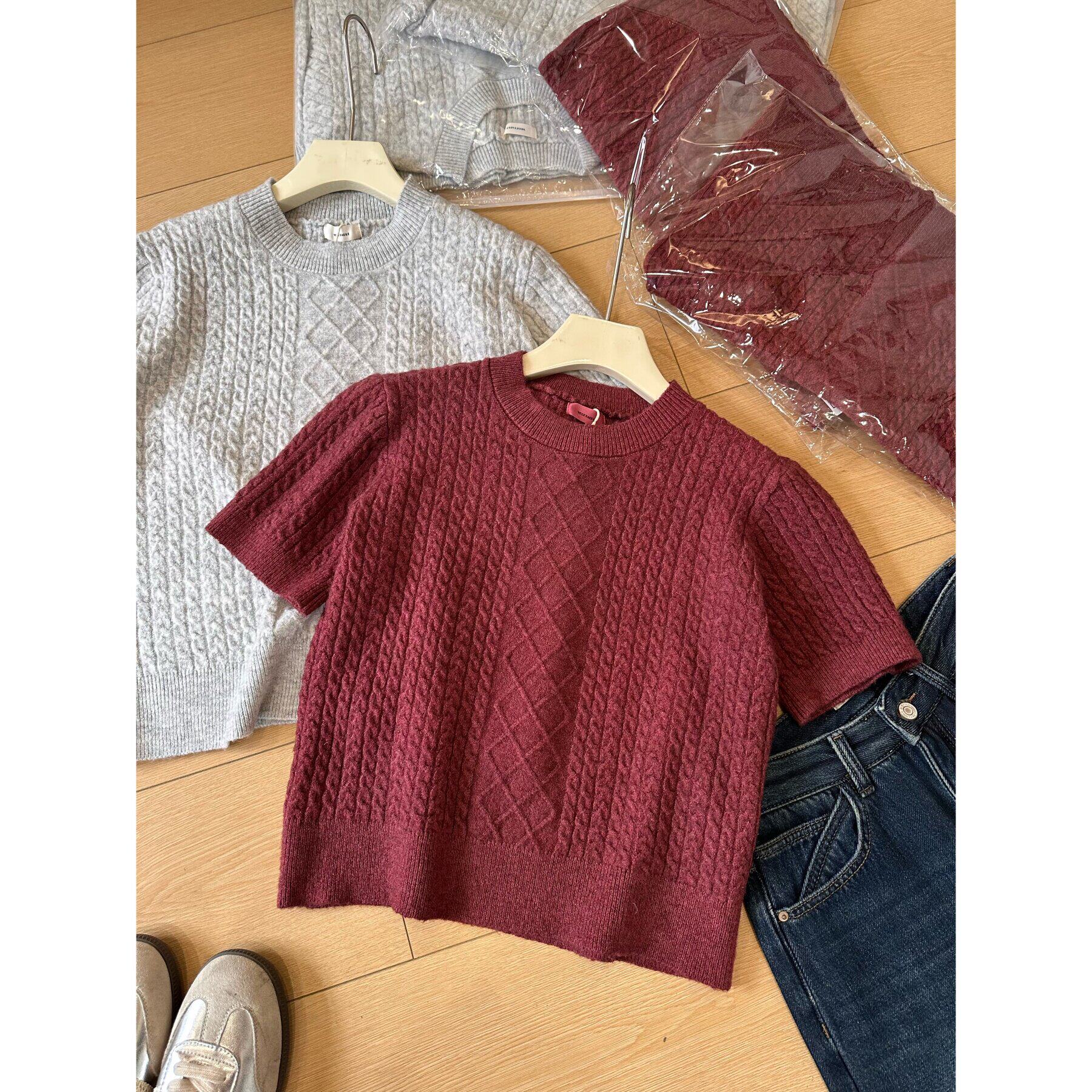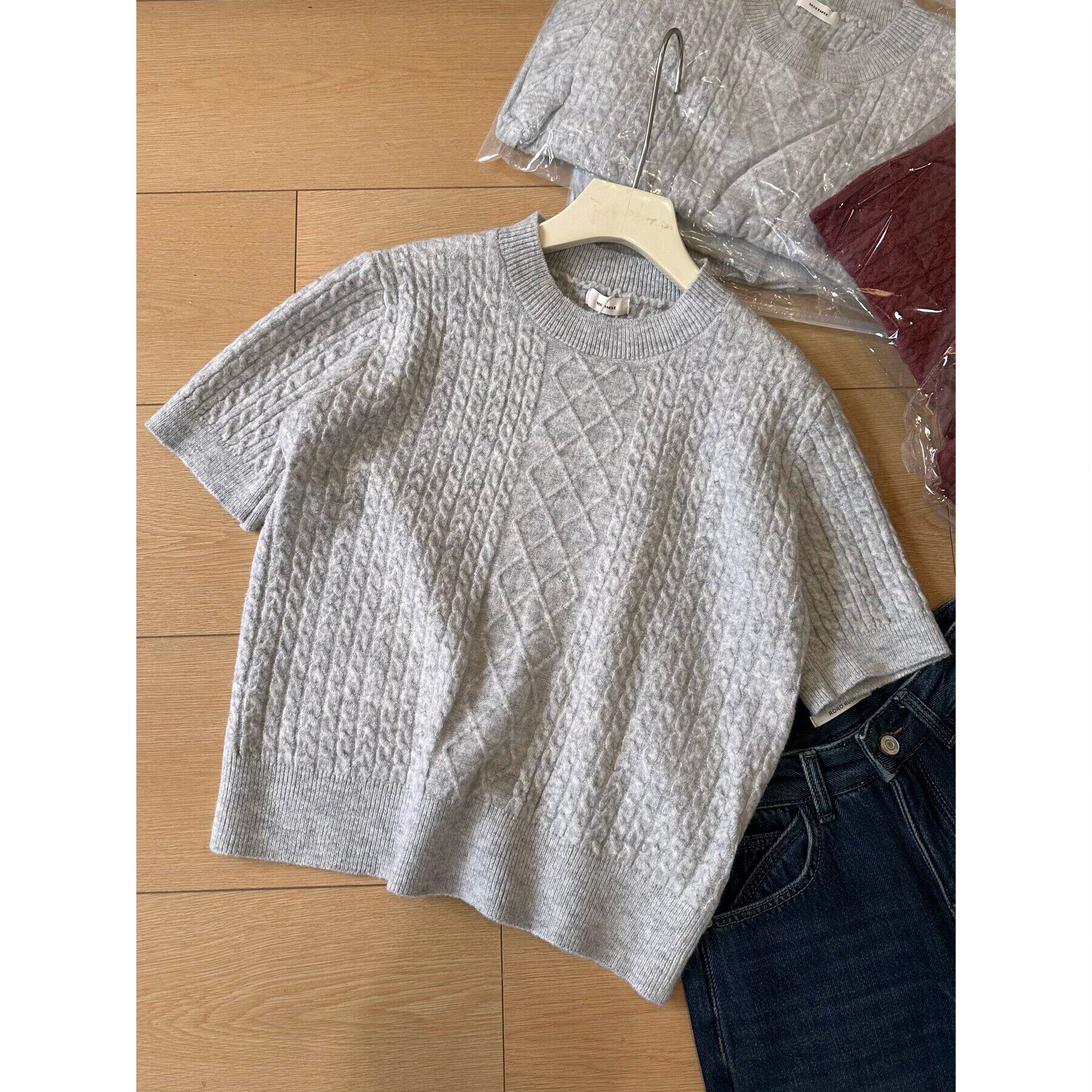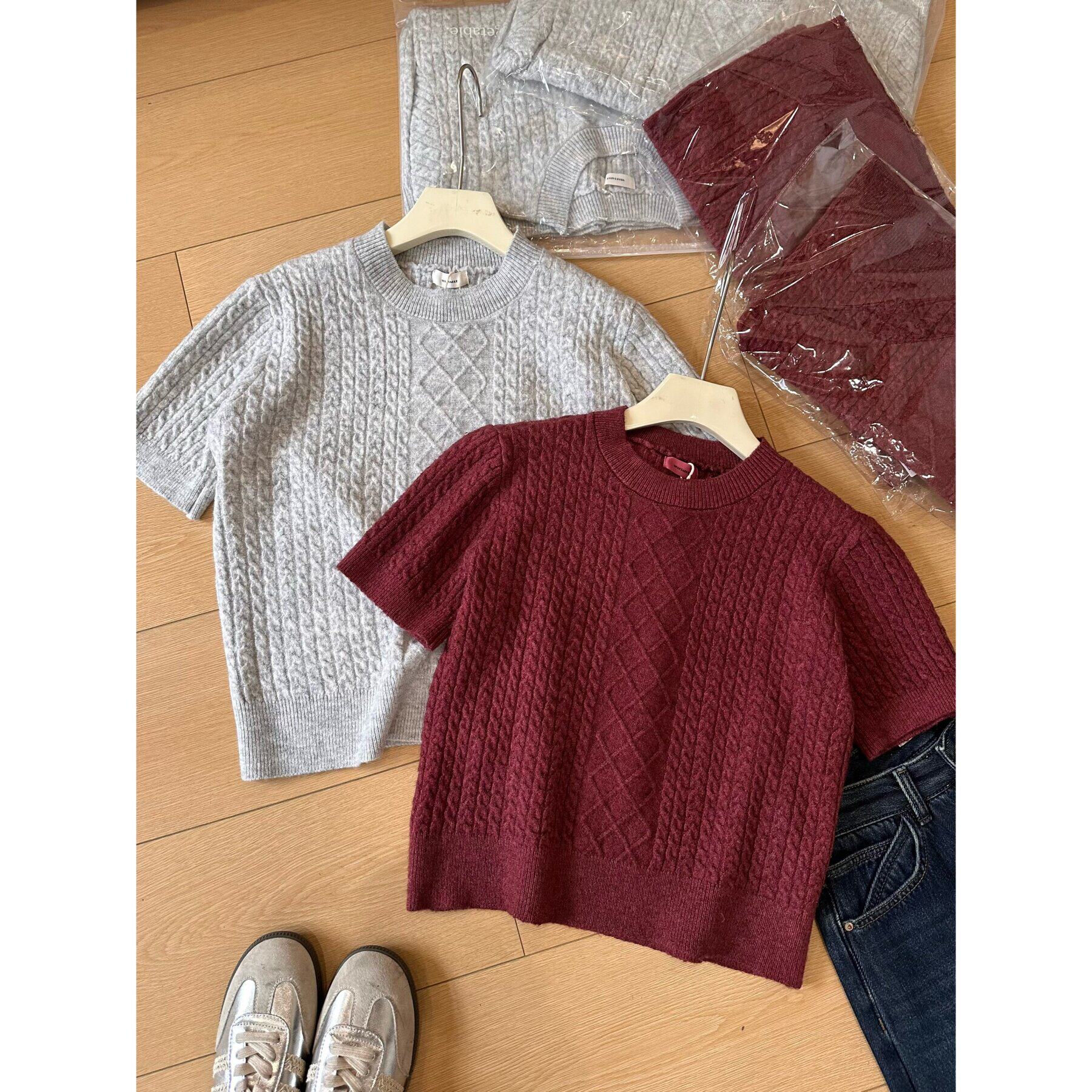 针织衫 十三行 A13法式 圆领麻花短袖 软糯内搭毛衣宽松上衣 女春季