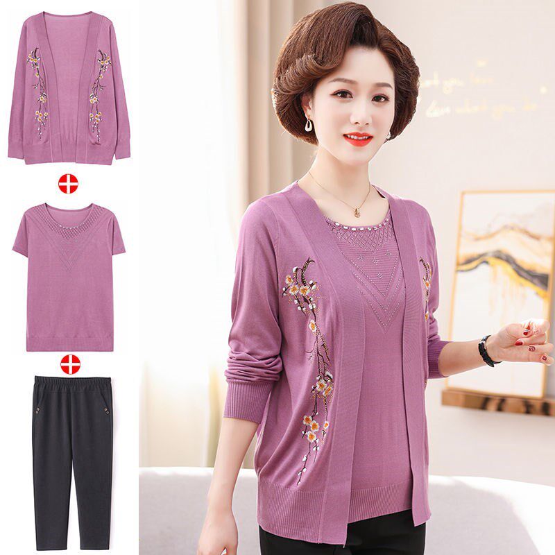 为您提供商品薄洋气外套装 夏 上衣两件套女早春中老年针织开衫 中年妈妈春秋新款的详细介绍,