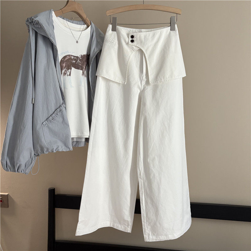 为您提供商品女宽松显瘦直筒阔腿潮 韩系春夏洋气高腰配腰封可拆屁帘两穿休闲裤的详细介绍,
