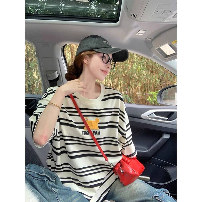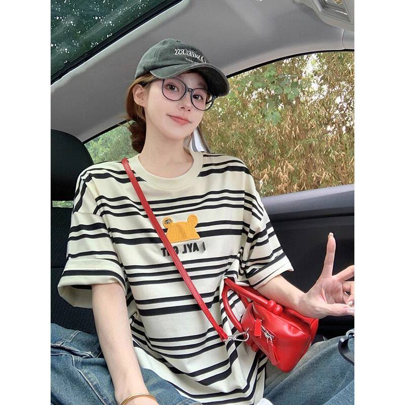 ⭐小红书推荐⭐上衣 胖MM300斤美式 夏季 松弛感宽松打底衫 百搭小熊刺绣条纹T恤小衫,所属T恤分类,由淘宝网挑选推荐!小红书抖音网红同款!哪里有卖上衣 胖MM300斤美式 夏季 松弛感宽松打底衫 百搭小熊刺绣条纹T恤小衫和多少钱质量怎么样✅。