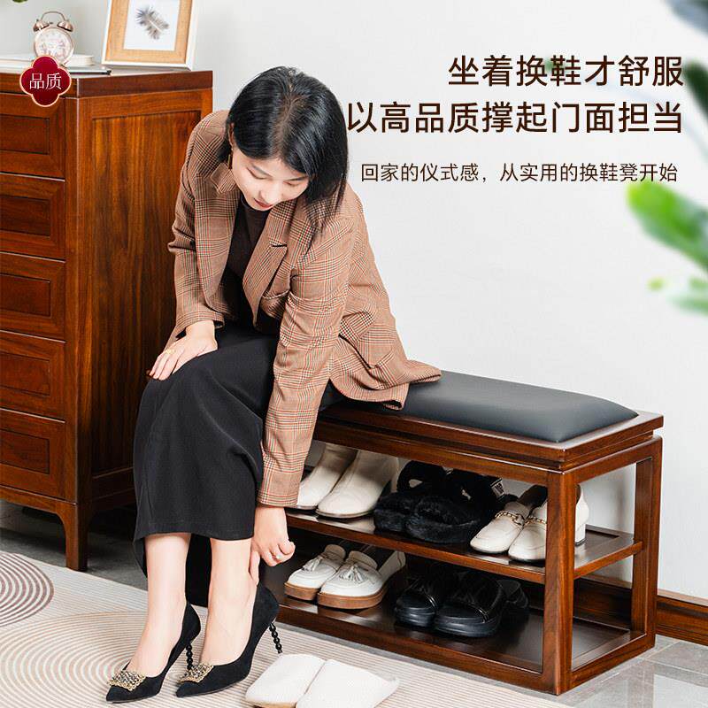 坐垫可坐鞋 新中式 进门实木换鞋 凳门口家用入户穿鞋 柜玄关 架多层鞋由