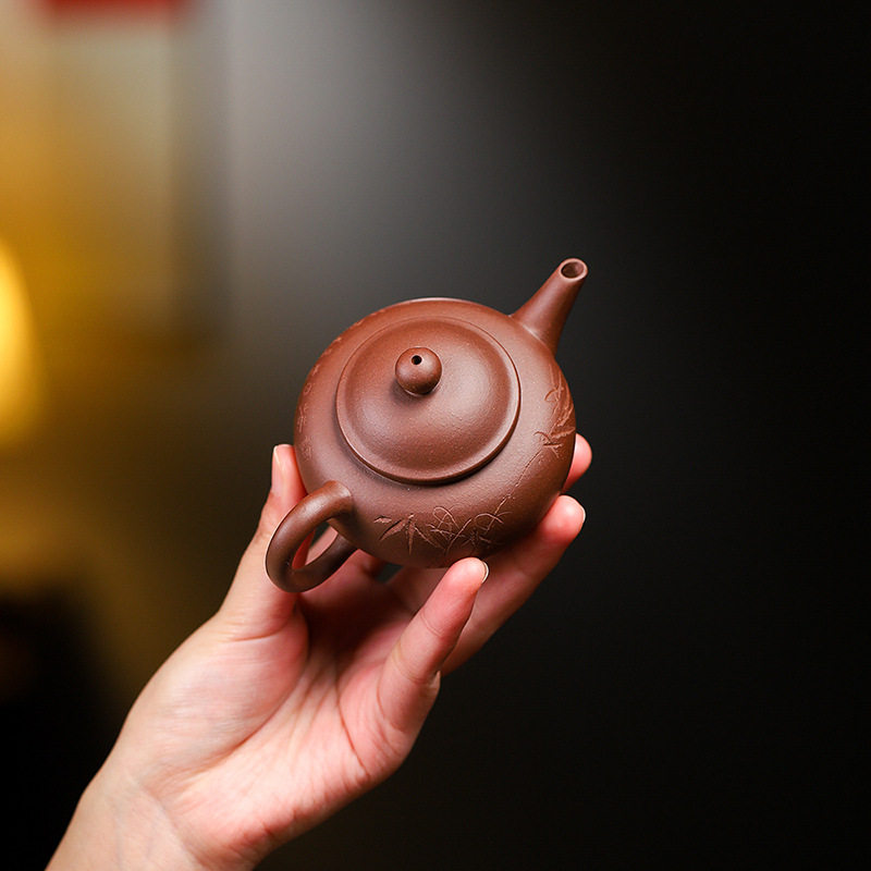 原矿紫泥全手工刻绘120cc水平壶紫砂壶红茶茶具家用传统泡茶壶