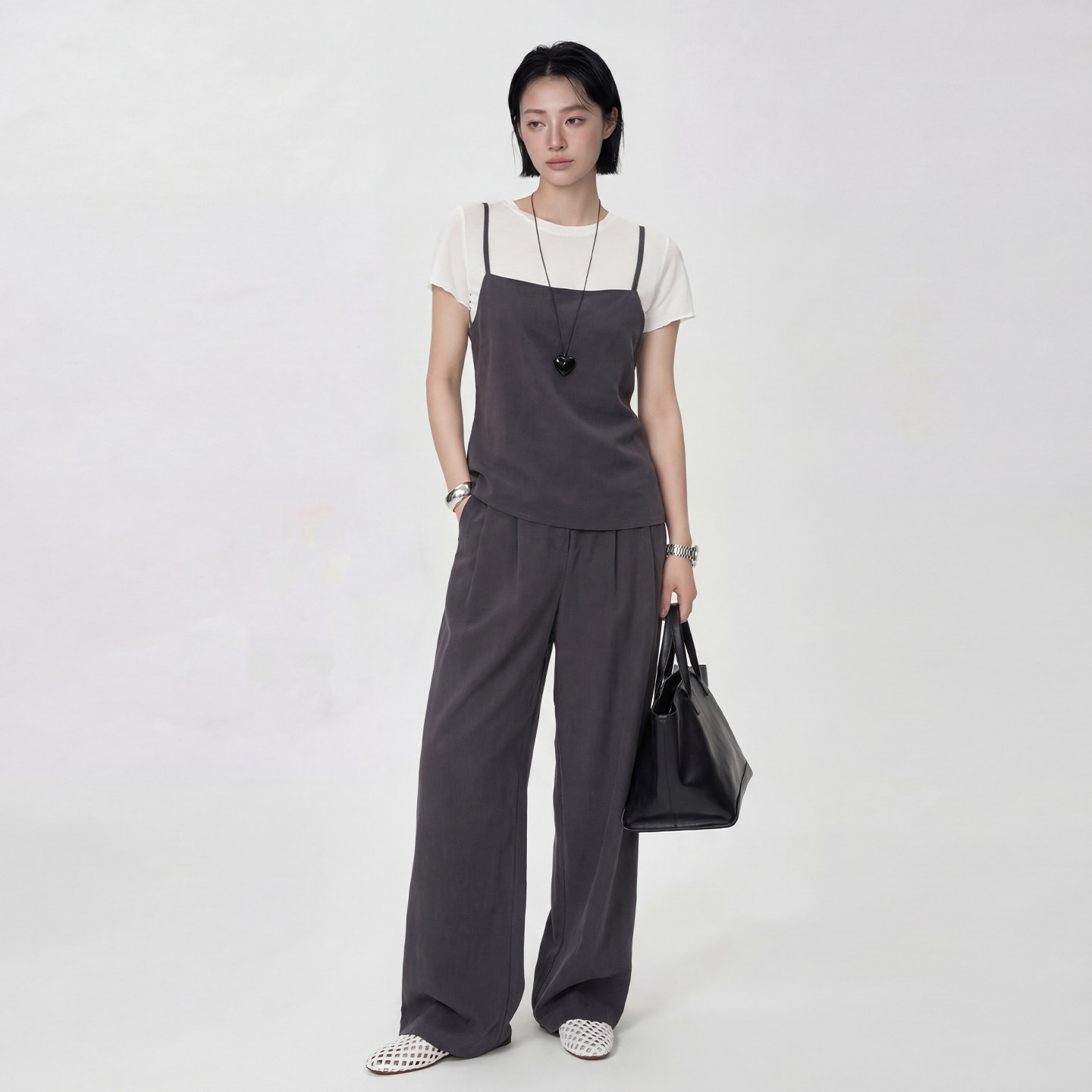 长裤 T恤 天丝吊带 轻熟小众不撞款 套装 三件套女2026夏季 林予熙