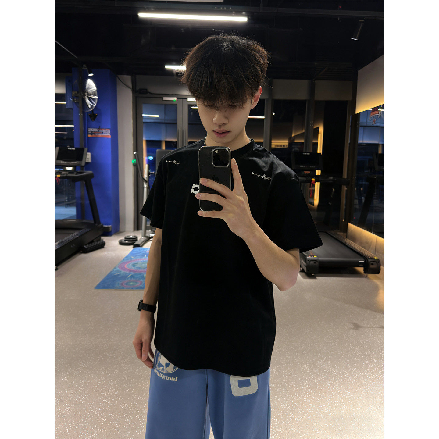 美式 T恤男女2026新款 夏季 潮牌宽松纯棉百搭上衣 复古字母刺绣短袖由