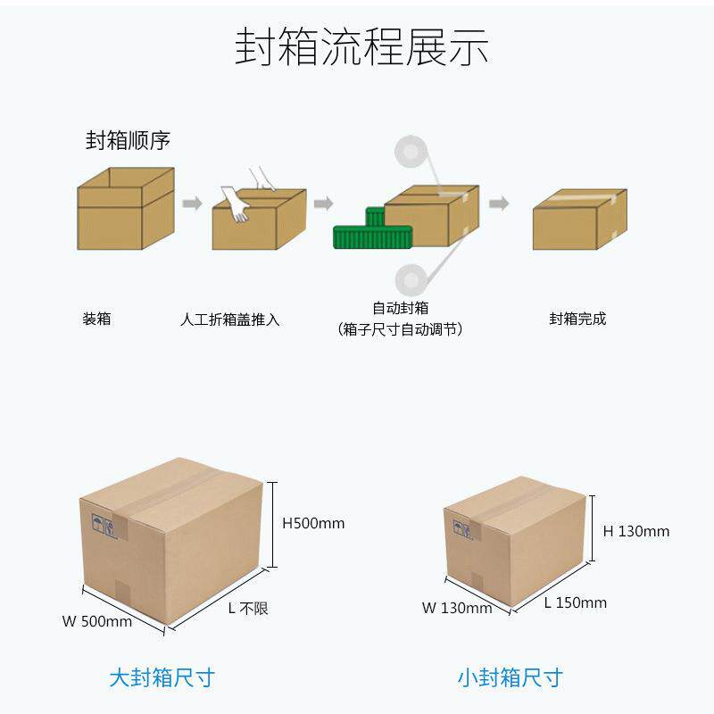 为您提供商品全自动一字型封箱机电商物流自适应纸箱尺寸上下封箱打包机的详细介绍,