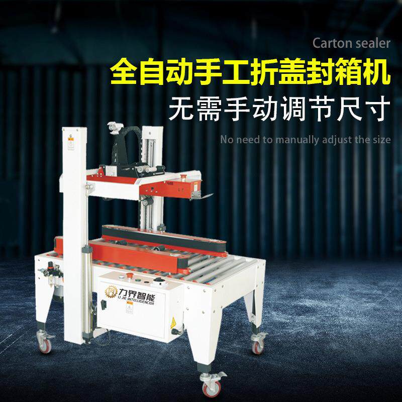 全自动一字型封箱机电商物流自适应纸箱尺寸上下封箱打包机由