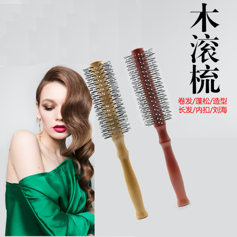 为您提供商品造型女发根蓬松尖尾刘海内扣圆筒梳 美发滚梳卷发超小木滚筒梳男士的详细介绍,