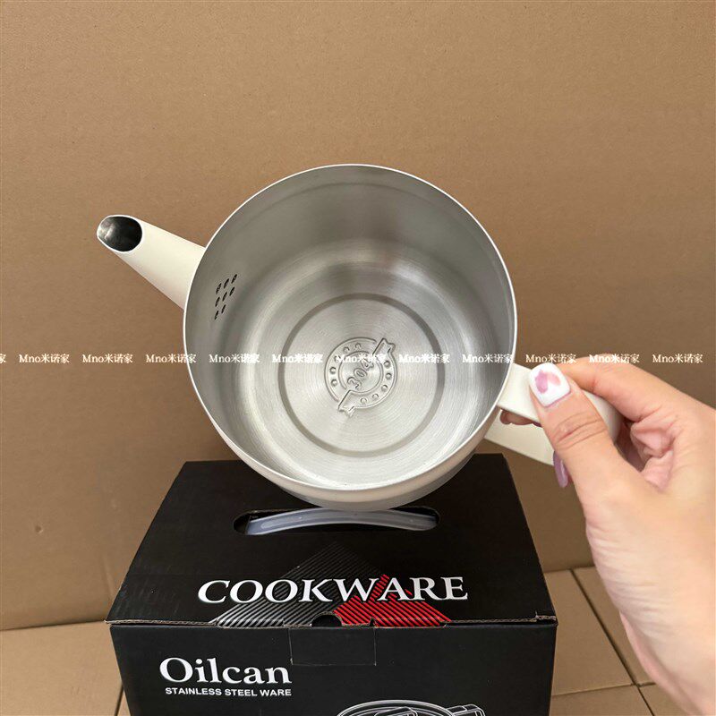 米诺家304油壶不锈钢家用过滤网油渣油罐防漏储油罐奶白色大容量由