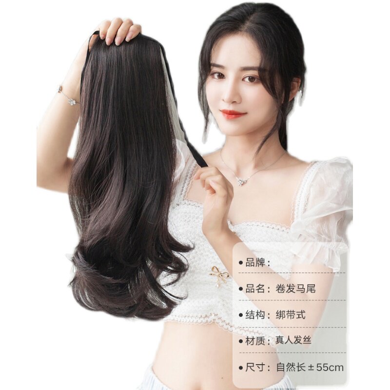 为您提供商品卷发假马尾假发女夏55长网红可扎高马尾假辫子微卷 真发马尾绑带式的详细介绍,
