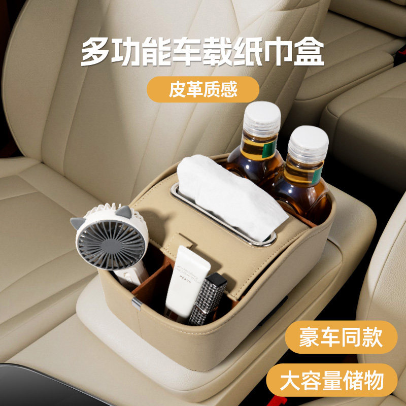 汽车用放餐巾袋纸抽收纳车内高级感 车载纸巾盒扶手箱座椅抽纸挂式