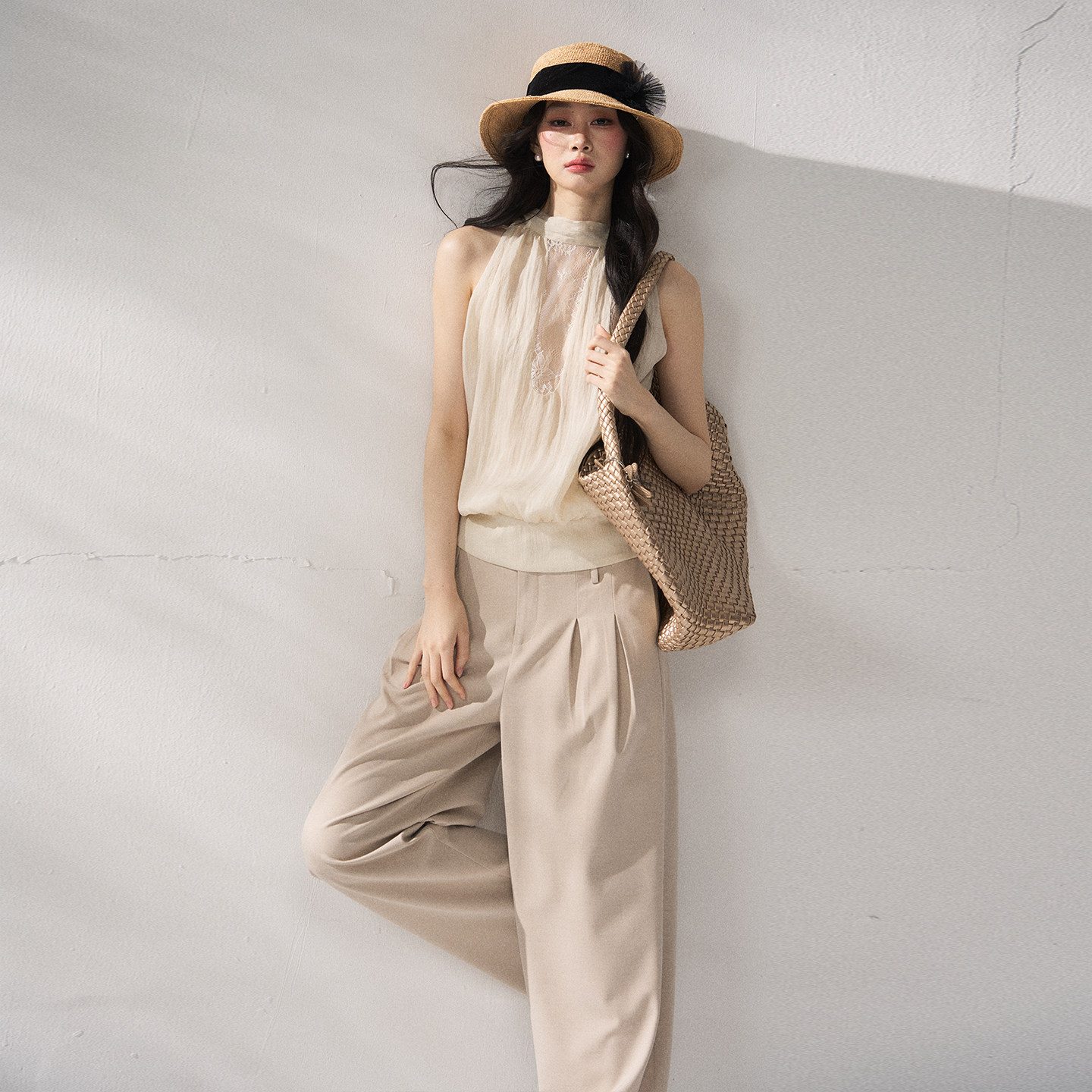 为您提供商品背心宽松修身 7Shiftin原创设计夏季 新品 挂脖吊带米色休闲无袖 短袖的详细介绍,