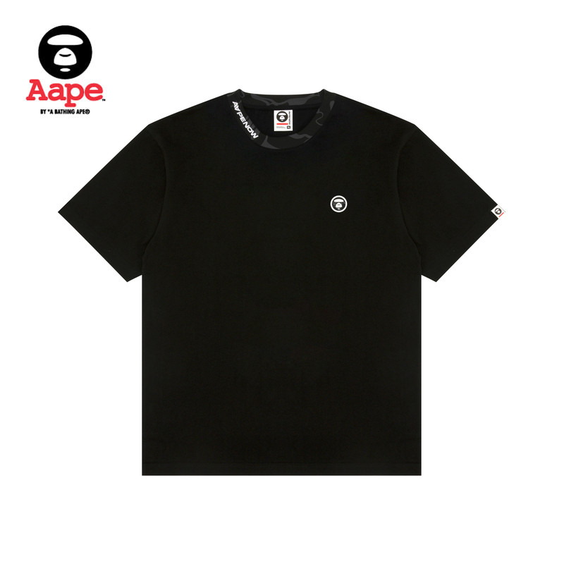 Aape旗舰店男装 T恤1814XXQ 春夏猿人小标徽章迷彩领口纯色短袖