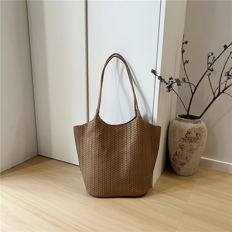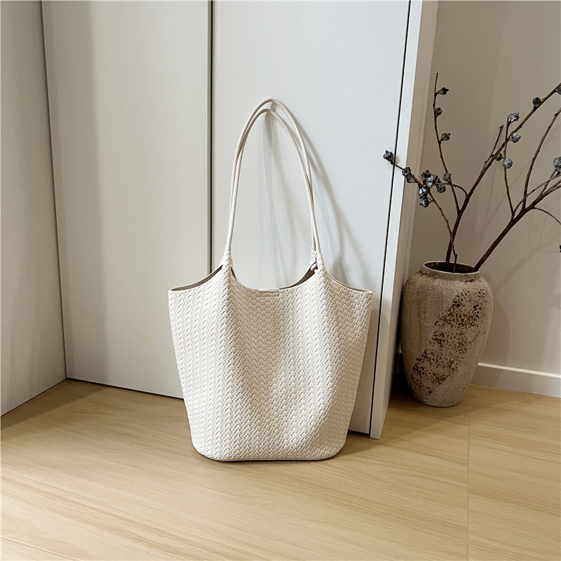 小脏柜 高级感气质手提单肩水桶编织包大容量通勤托特包 2026新款