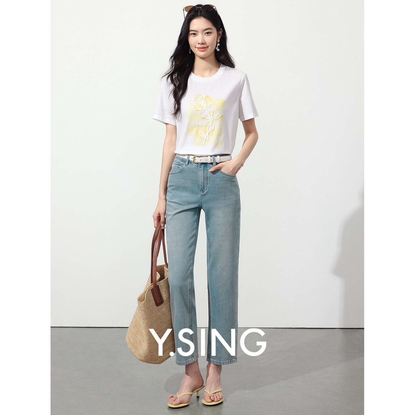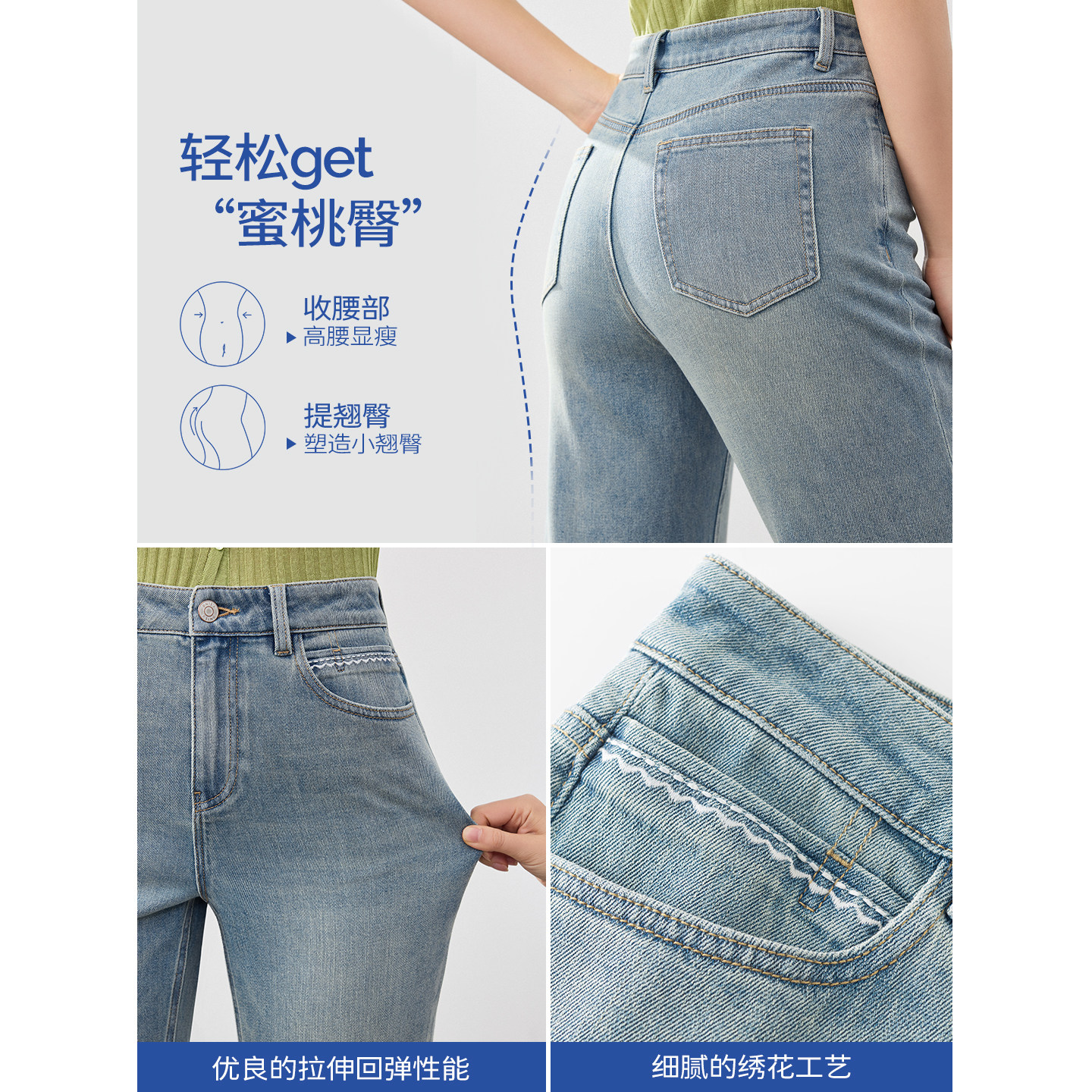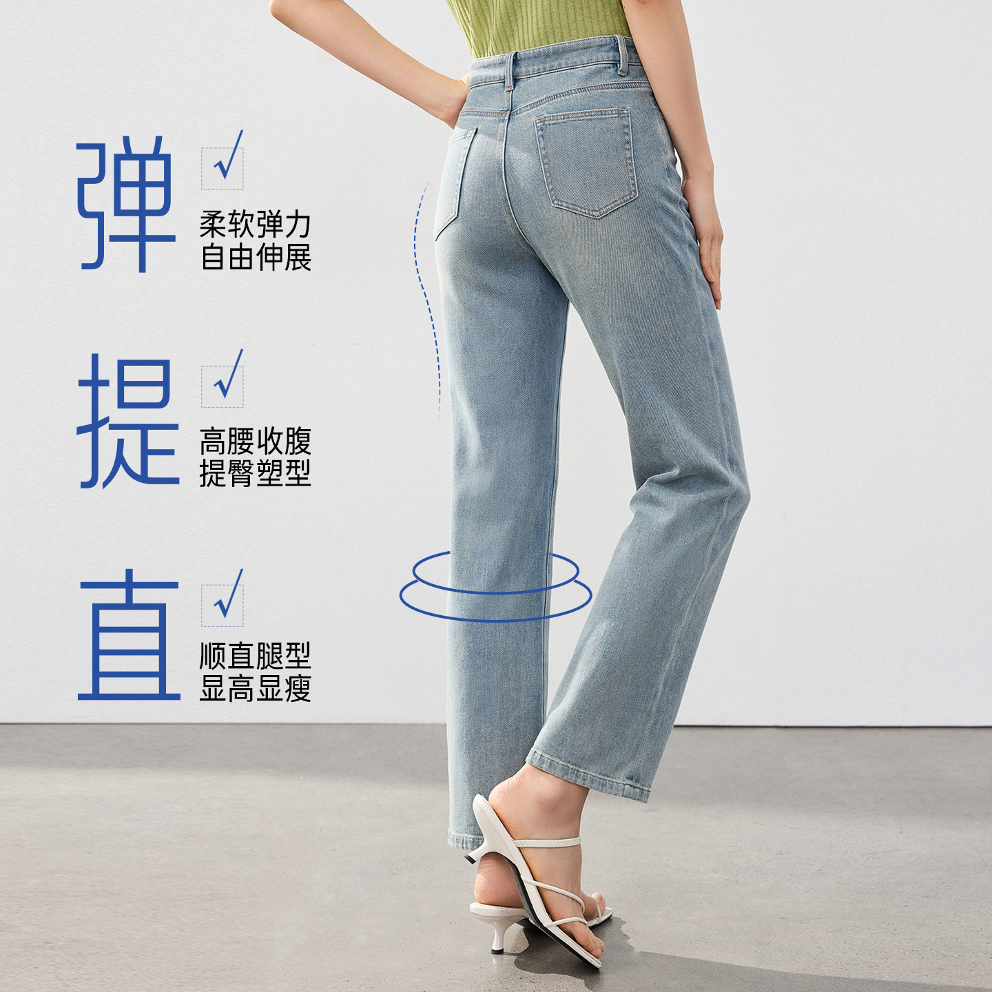 衣香丽影棉感蓝色九分牛仔裤 新款 高腰显瘦百搭直筒裤 女2026年夏装