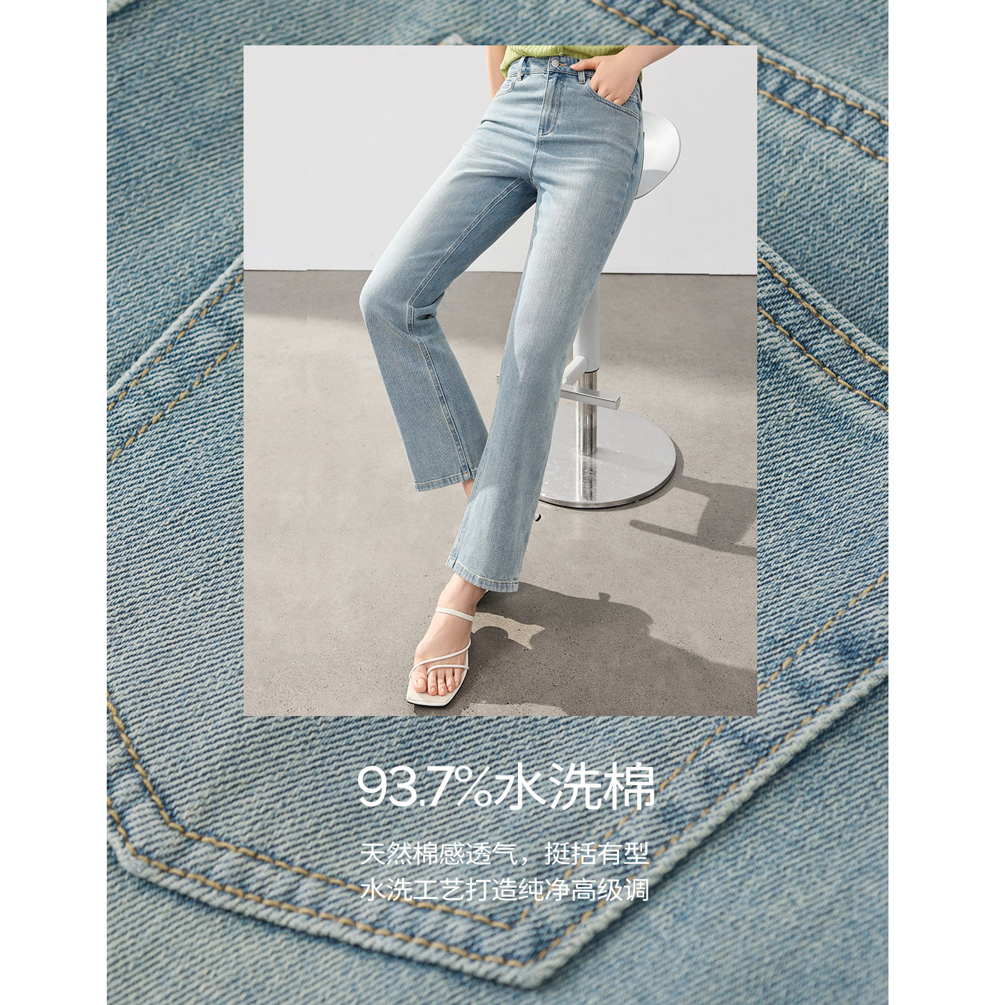 美式 浅蓝高弹力微喇牛仔裤 垂坠感百搭休闲cleanfit长裤 子男 基础款