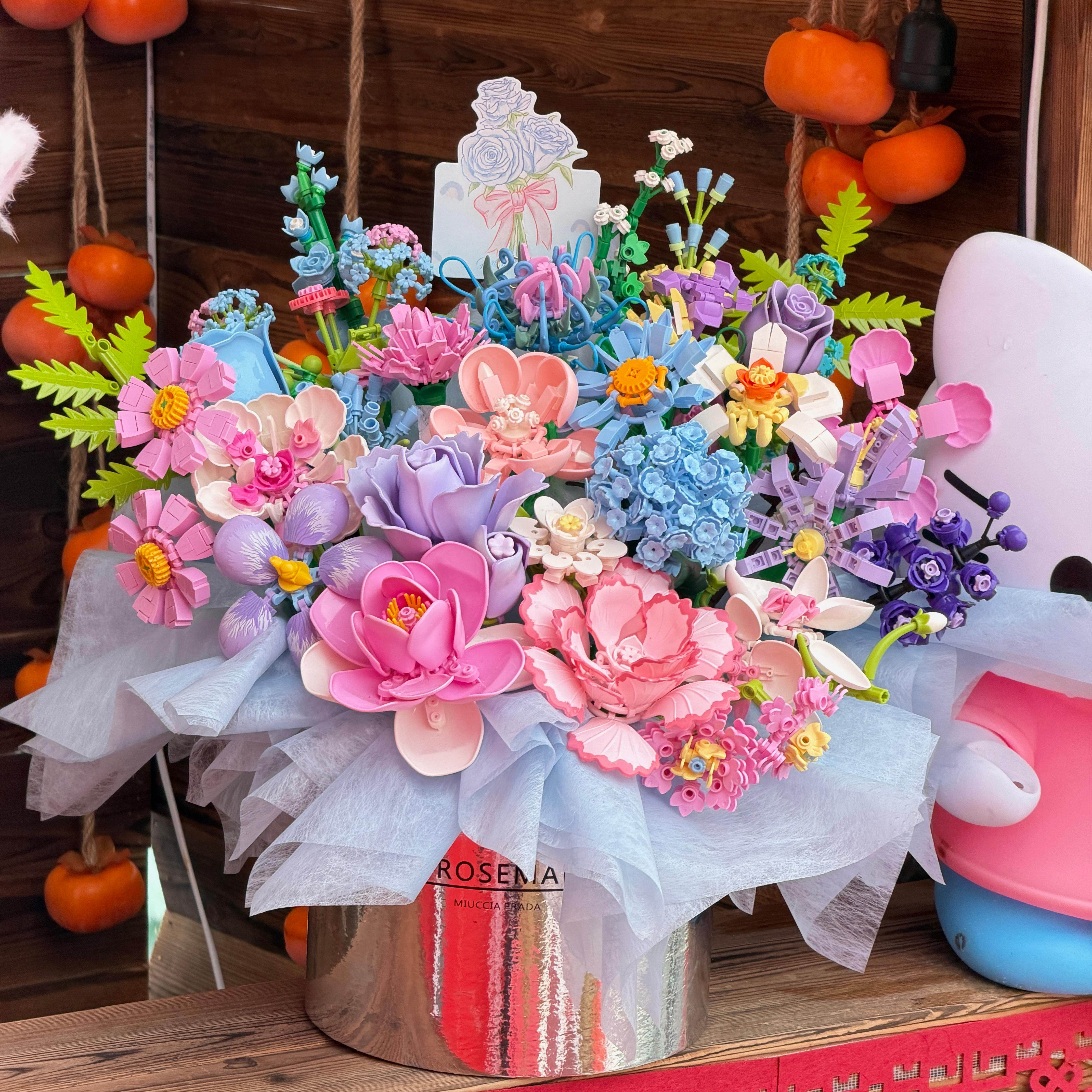 仙气玫瑰积木永生花束套装 女生适用乐高高颜值 礼物生日手工拼装由