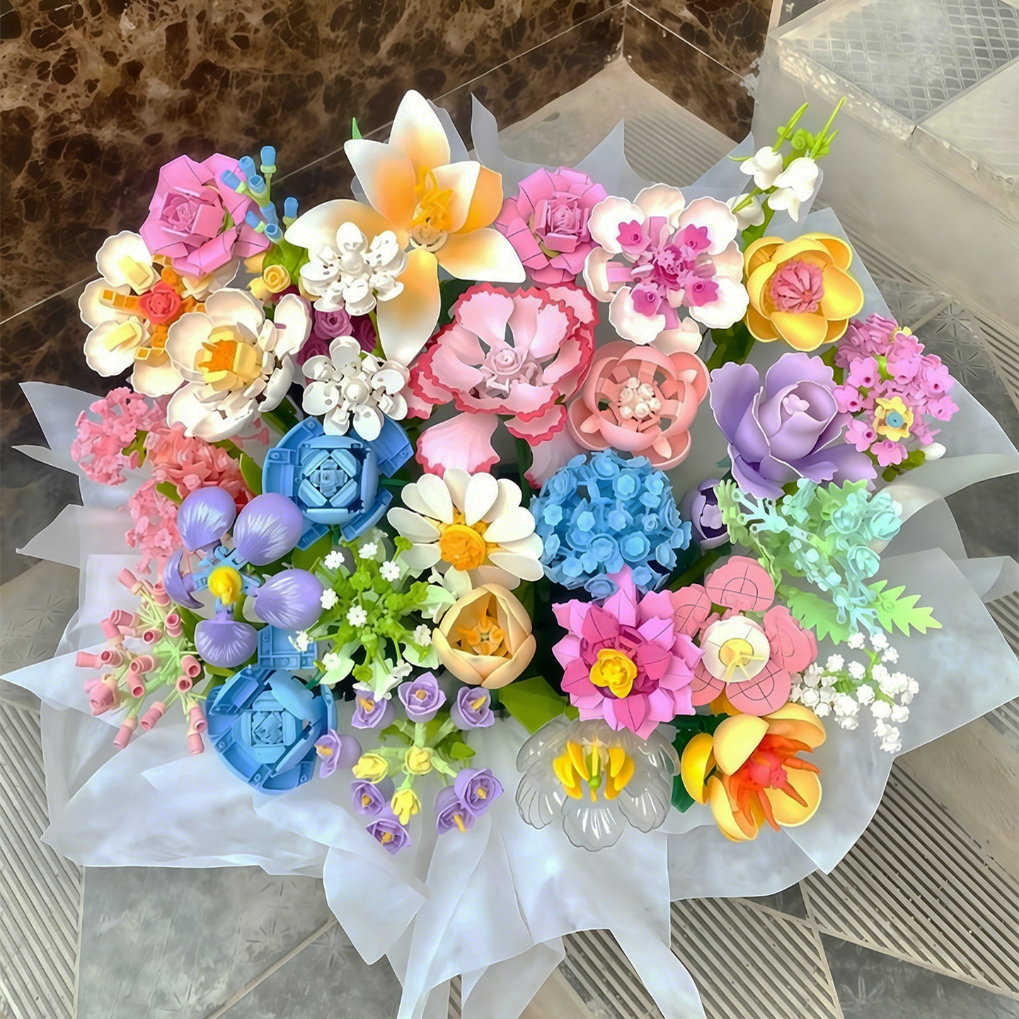 仙气玫瑰积木永生花束套装 女生适用乐高高颜值 礼物生日手工拼装