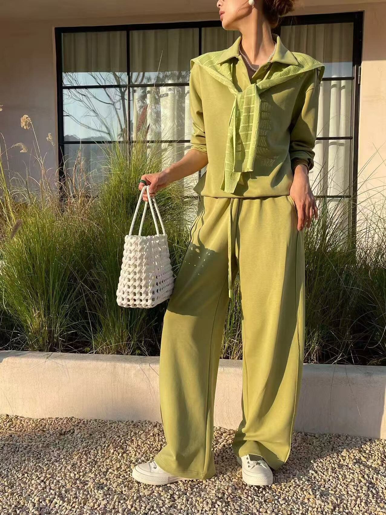 女运动休闲通勤慵懒时尚 2026春款 套装 两件套长袖 百搭阔腿裤