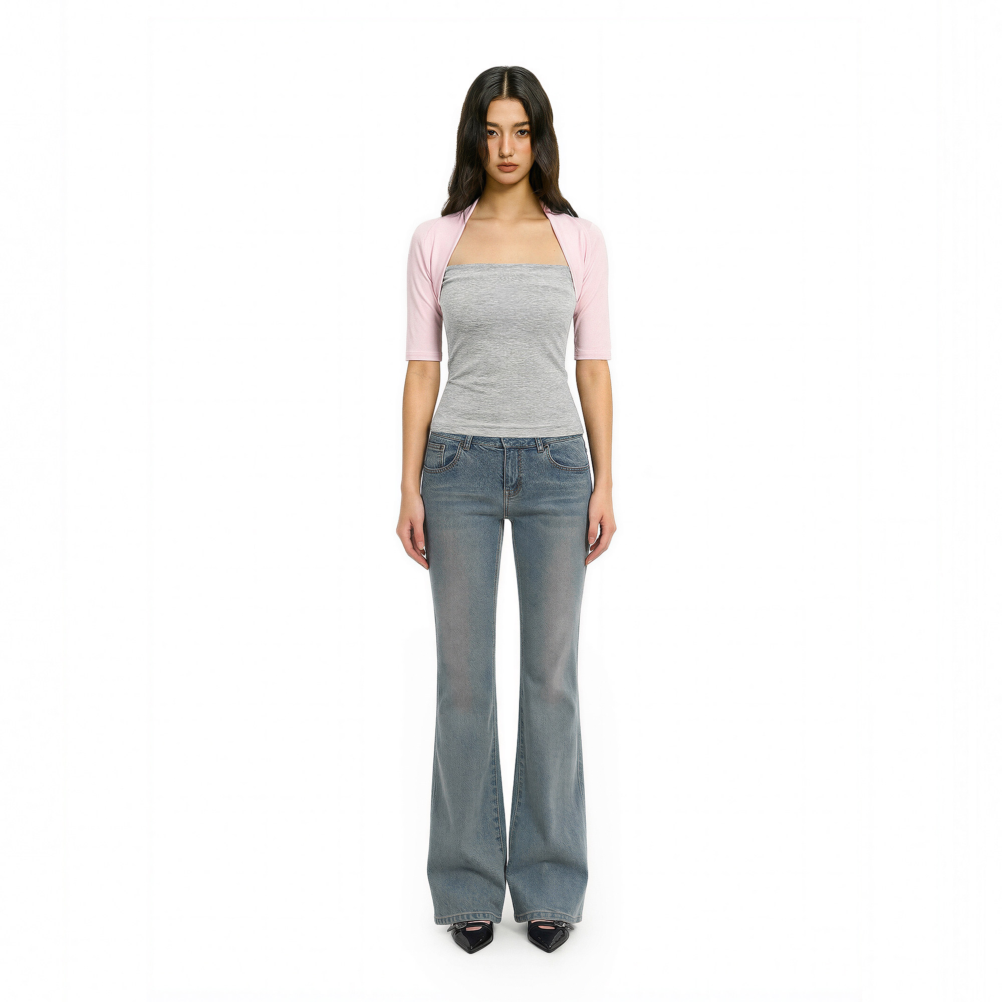 FDR官方店 短袖 t恤女2026新款 假两件撞色坎肩抹胸粉色上衣夏修身