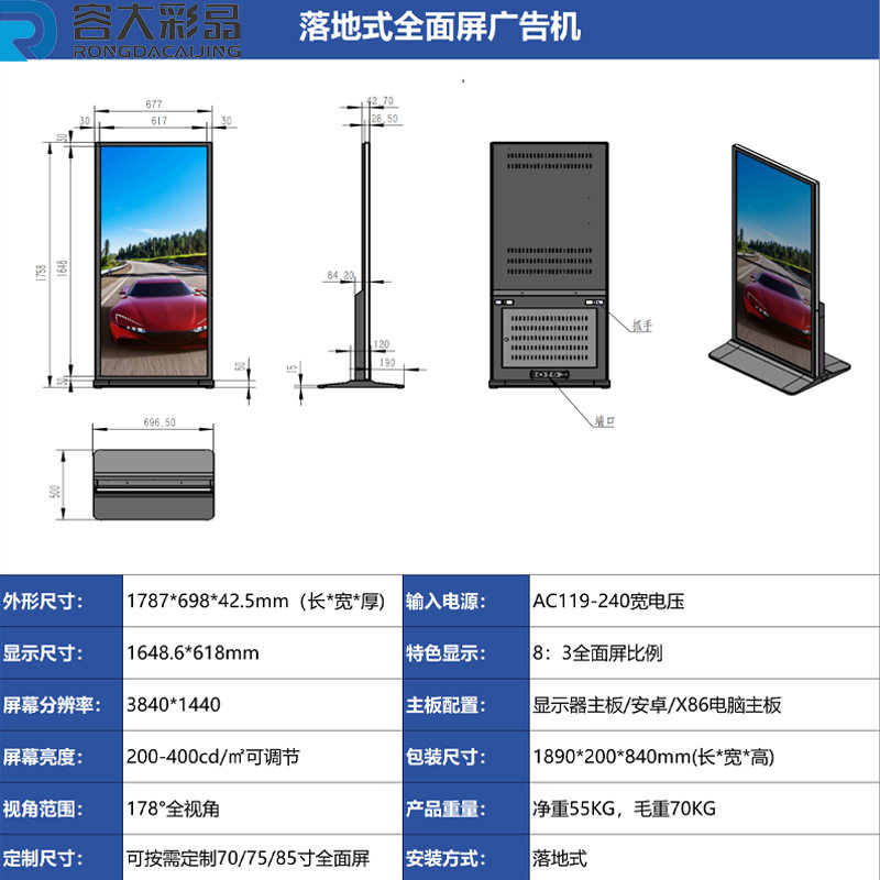 为您提供商品85寸全面屏立式 广告一体机4K条形智能触摸落地式 导览查询机的详细介绍,