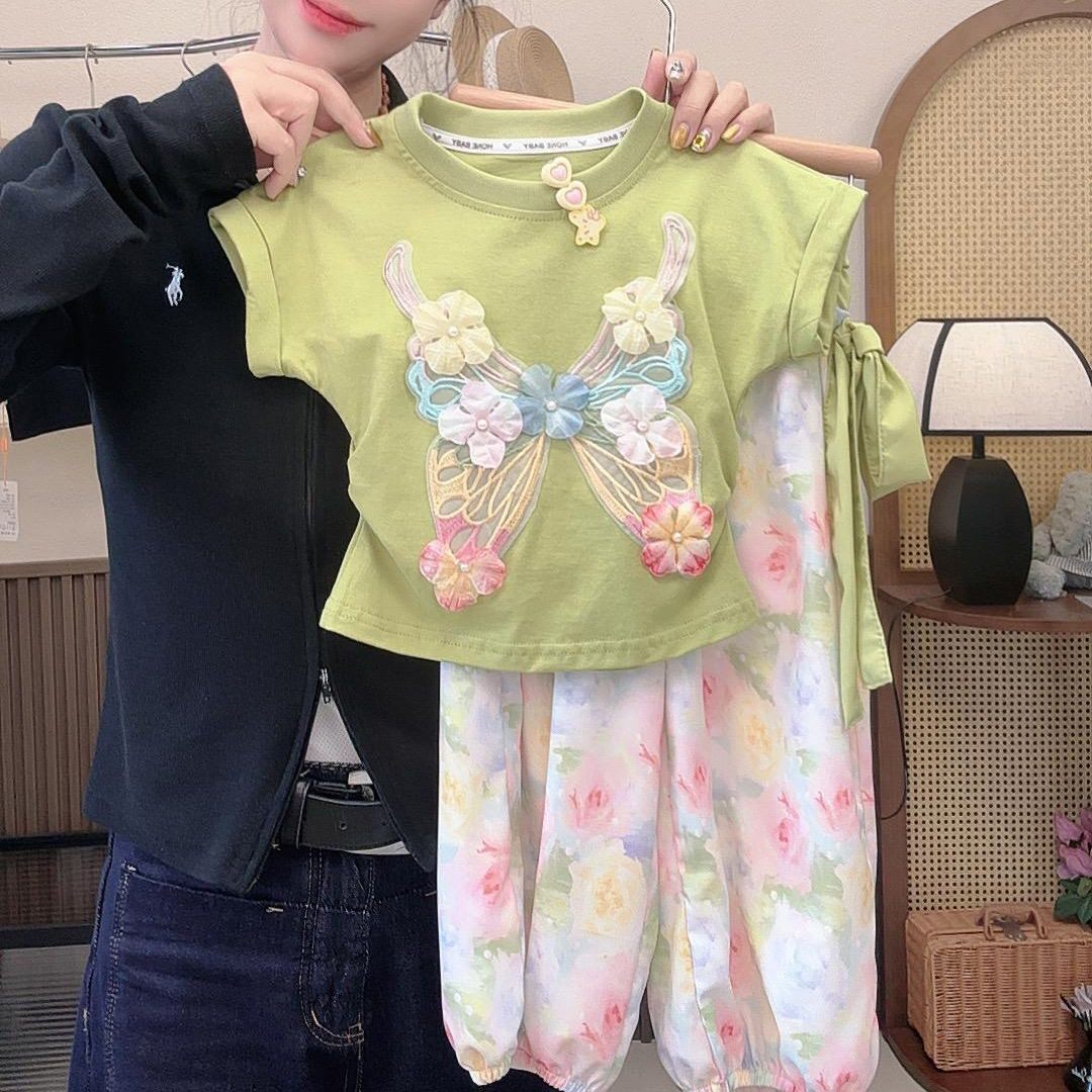 洋气夏季 亲子装 2026新款 立体蝴蝶短袖 休闲两件套装 薄款 女童春季由