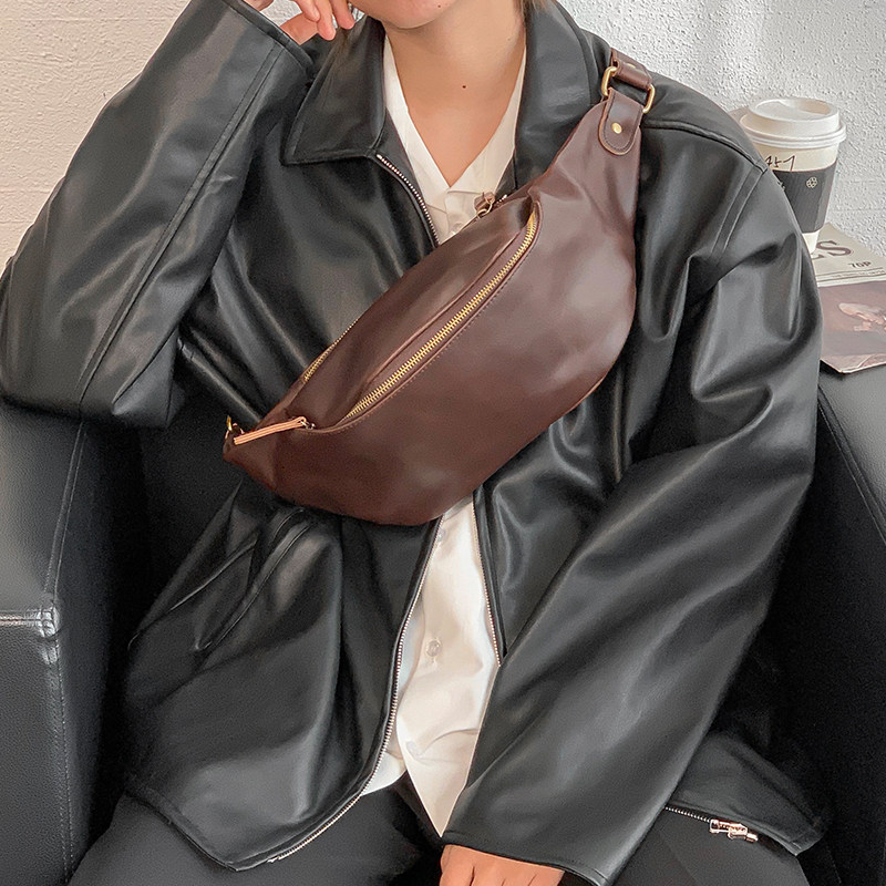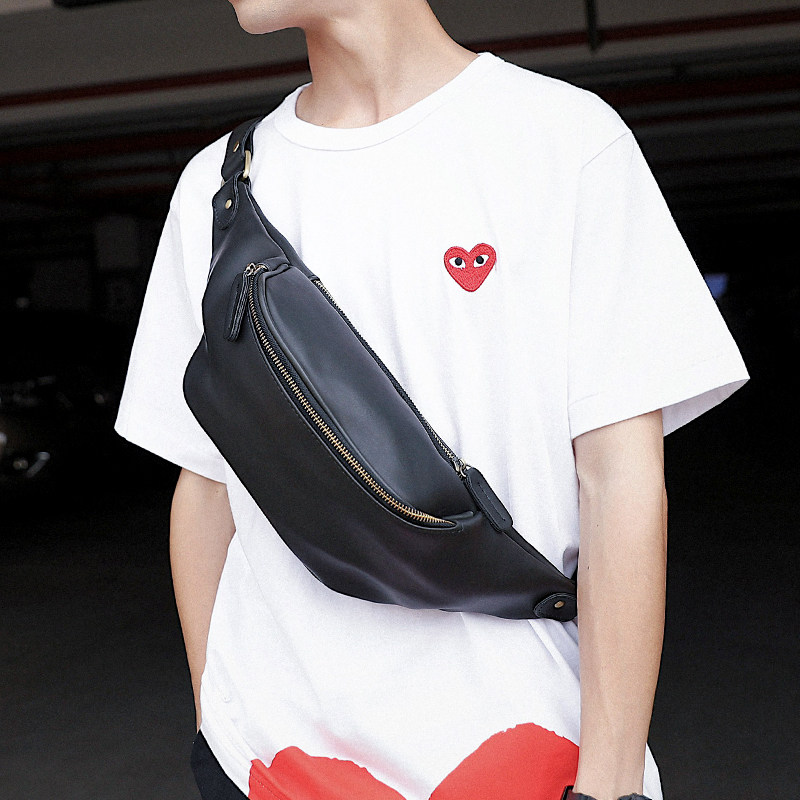 皮腰包休闲小腰包潮男户外小包 加硬小包 小胸包 2026复古腰包男士