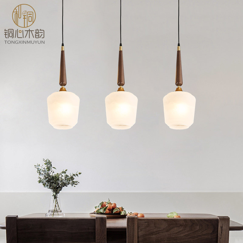 新中式 灯具 卧室床头单头小吊灯客厅餐厅吧台单头黑胡桃木2021新款由