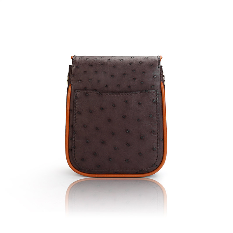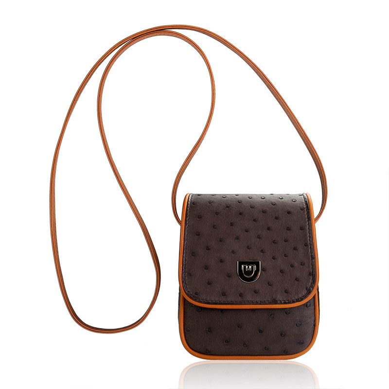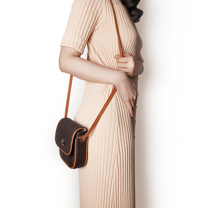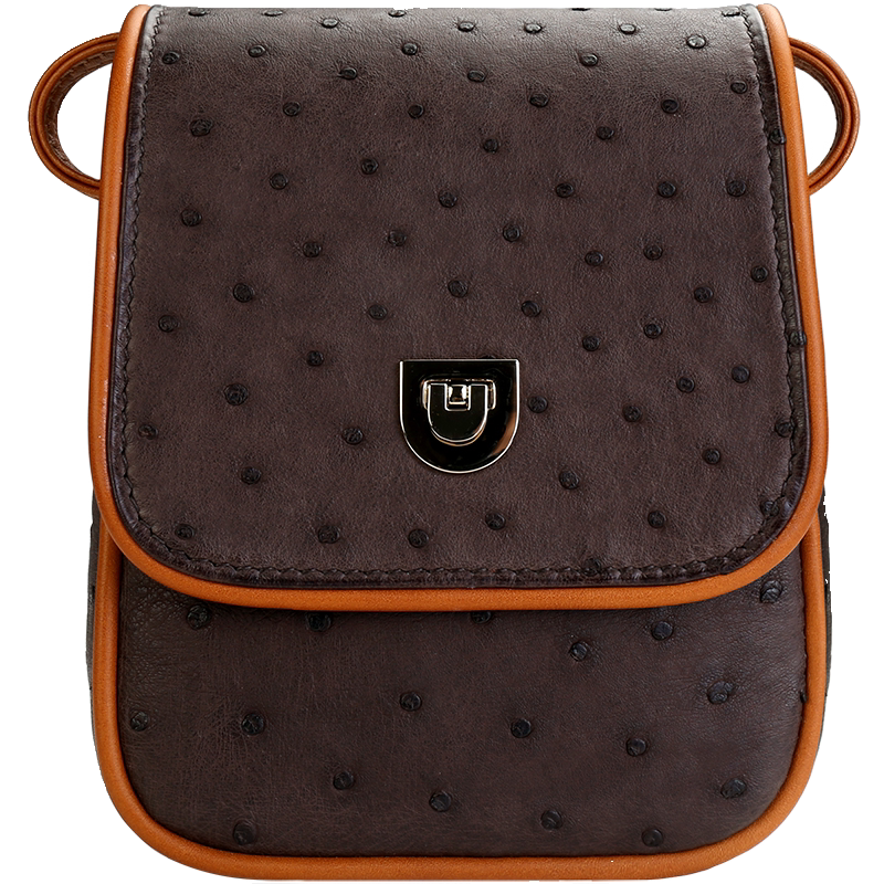 聚变手工皮具高端定制深棕色鸵鸟皮真皮迷你女士单肩斜挎小包定制