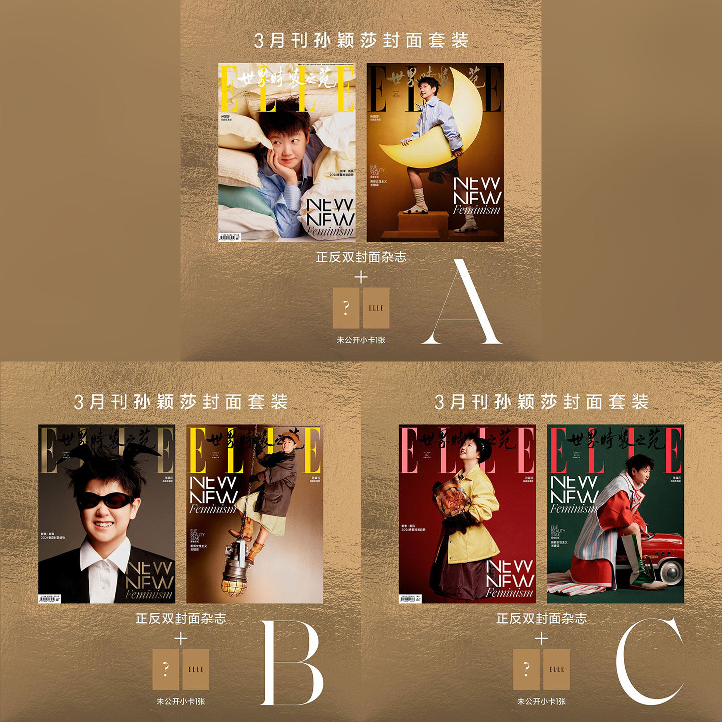 鞠婧祎 4月 官方版 2张海报 之苑杂志2026年四月 ELLE世界时装 张凌赫封面 ELLE 孙颖莎孙俪迪丽热巴肖战 5月许光汉 宋茜 3张小卡由