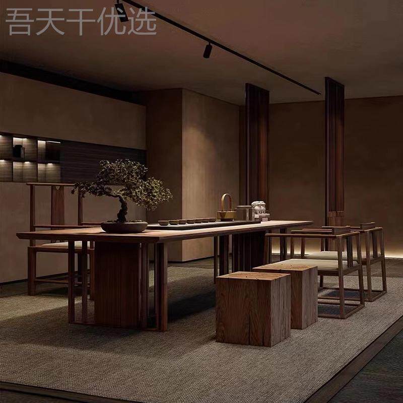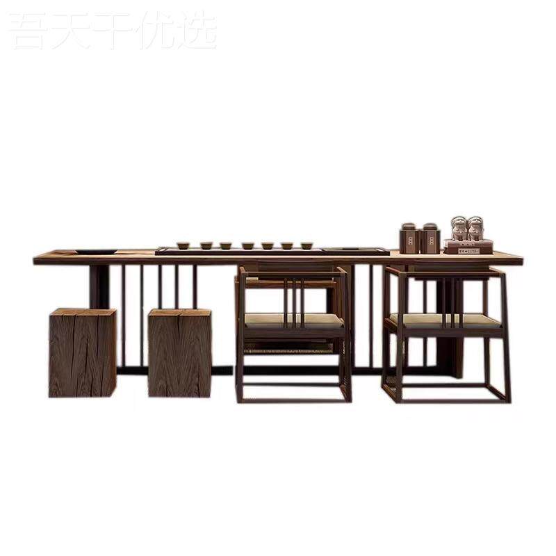茶室桌茶椅LKT组合美黑胡桃木功北夫茶台茶馆办公喝茶实木 新中式由