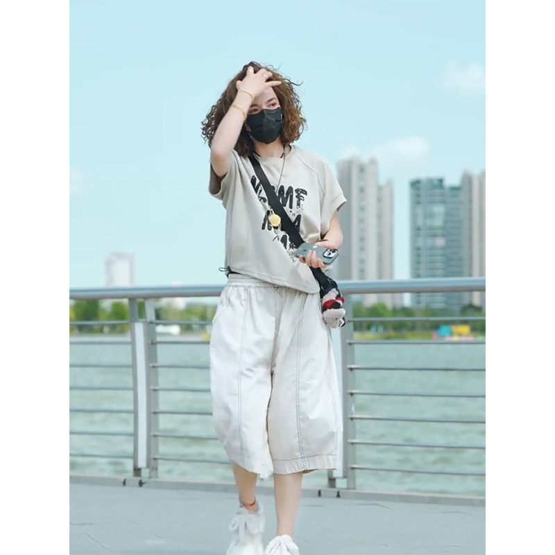 套装 时尚 新款 两件套 T恤 休闲百搭七分裤 女圆领印花短袖 2025夏季由