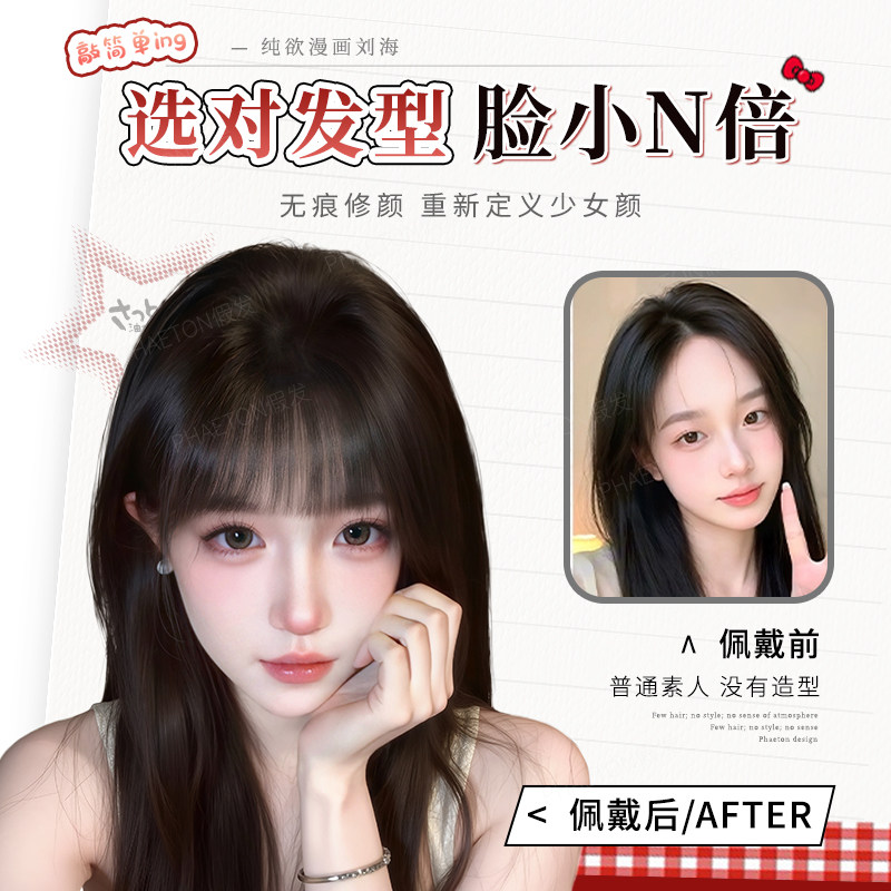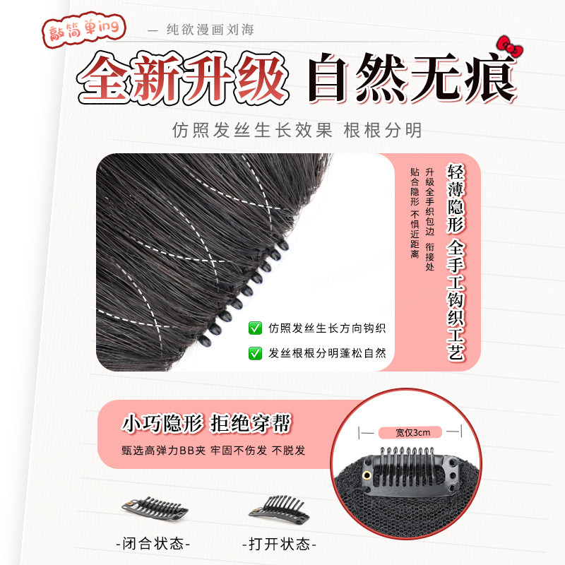 漫画刘海假发片女头顶自然前额真发隐形无痕张元 齐刘海假发 英同款