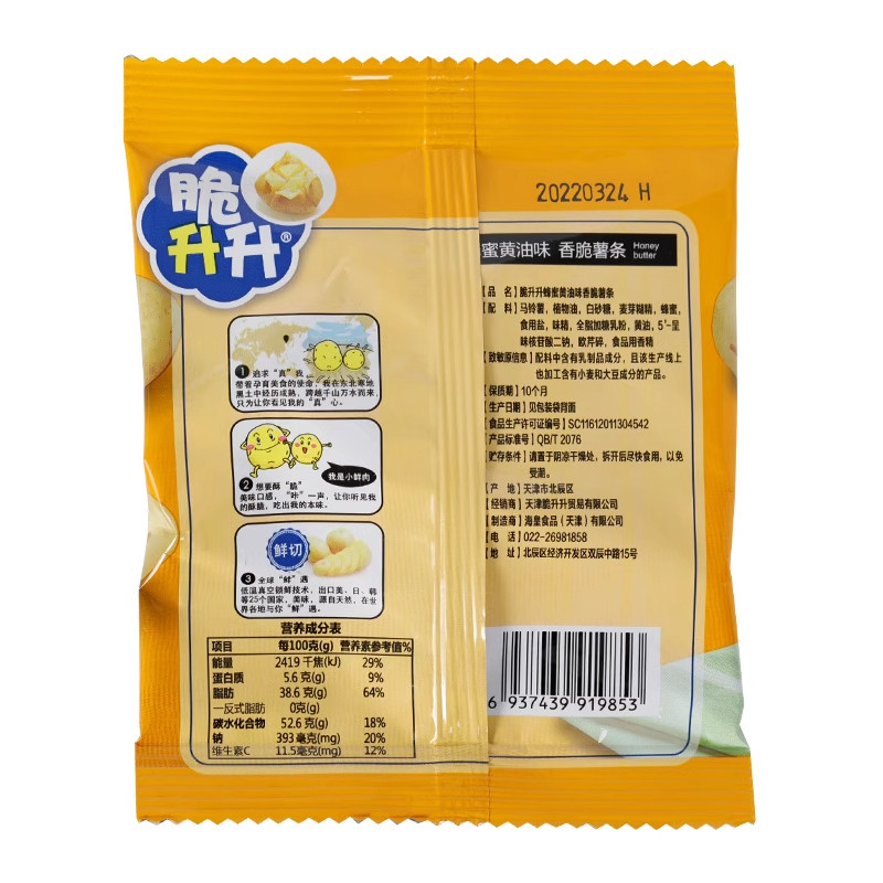 为您提供商品原味黑胡椒味蜂蜜黄油薯片休闲零食下午茶 脆升升香脆薯条20g袋装的详细介绍,
