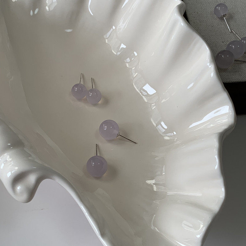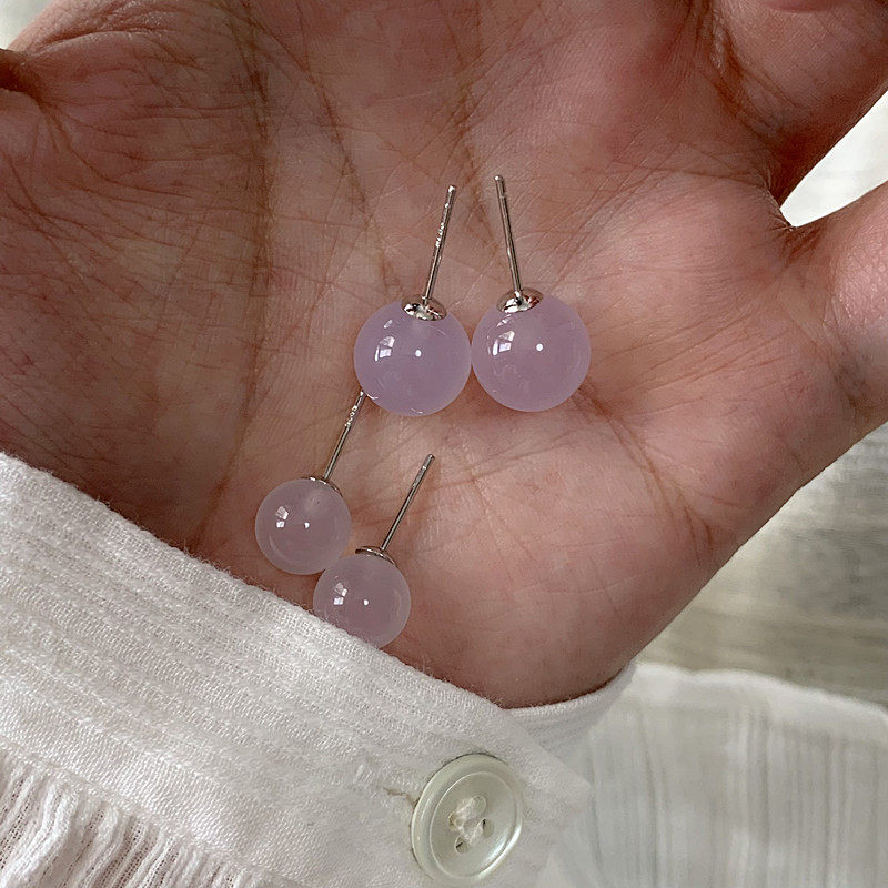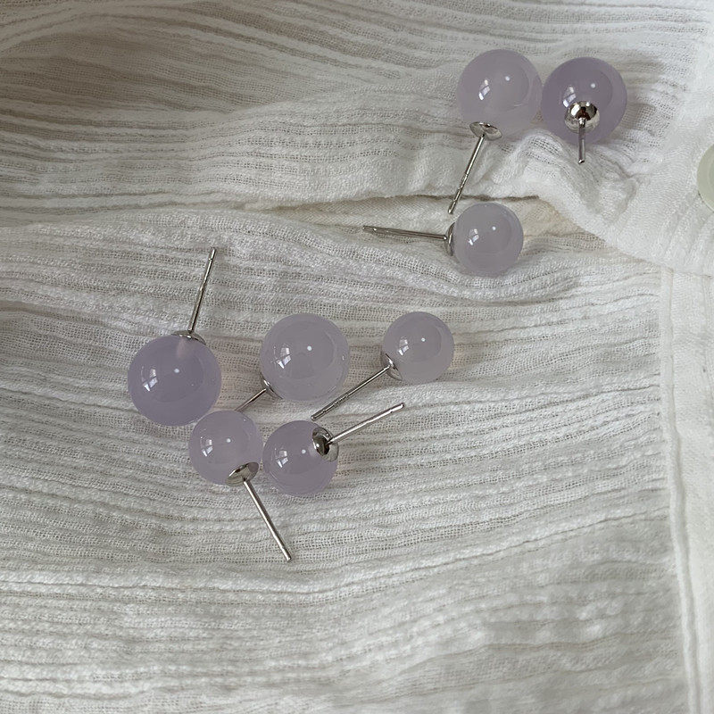 耳饰新款 高级感天然冰紫玉髓单珠耳钉S925纯银简约百搭个性 新中式