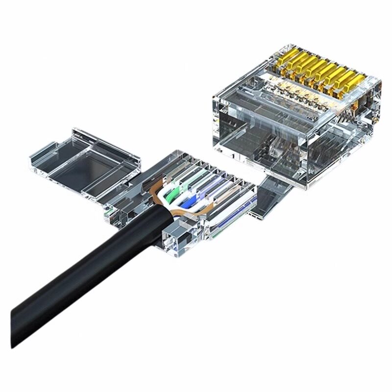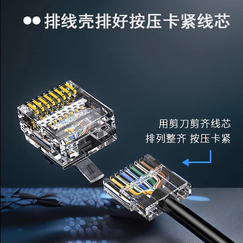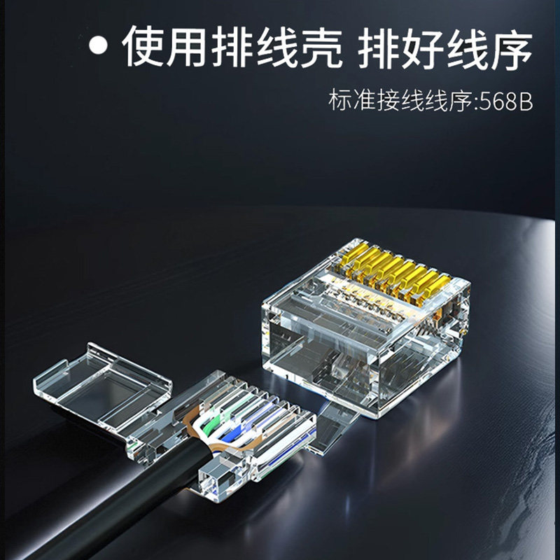 免压网线水晶头接头超五5六6七7类千兆万兆免网线钳压接 达而稳