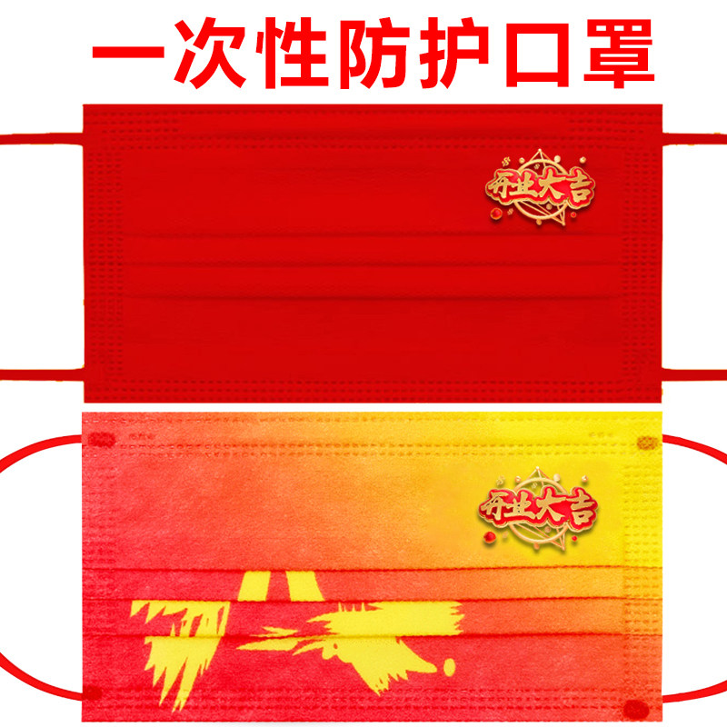 为您提供商品印花图案定制logo 开业大吉企业门店中国红一次性口罩红色创意个性的详细介绍,
