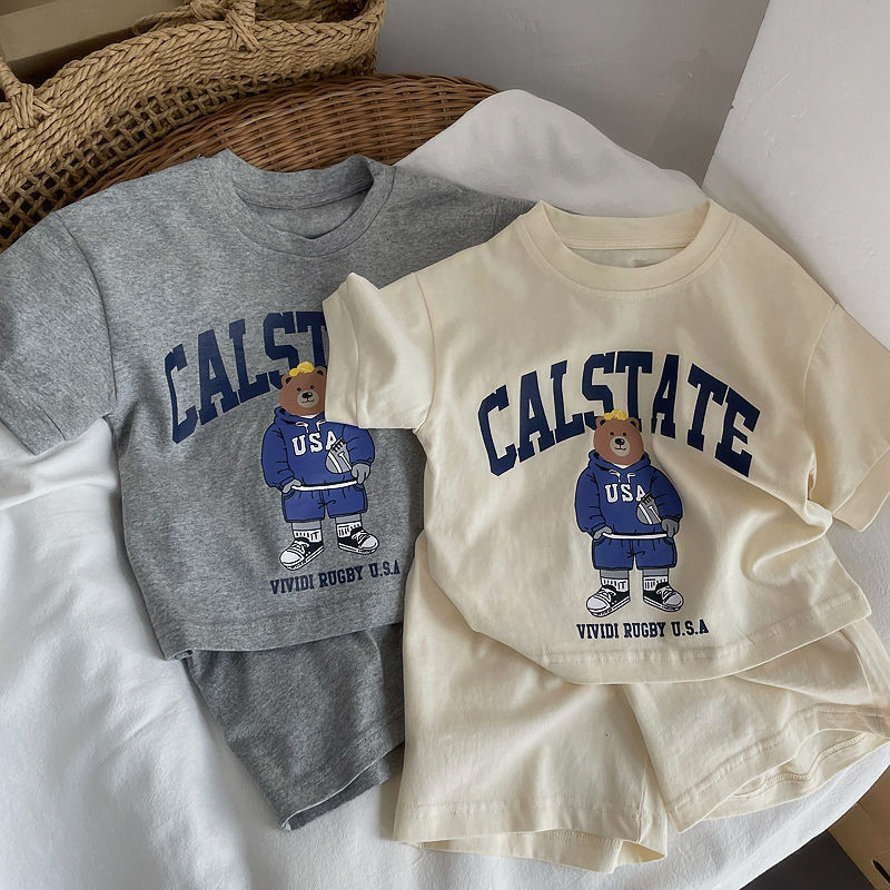 男女宝宝套装 新款 中小童小熊卡通洋气薄款 休闲运动两件套 卡通夏季