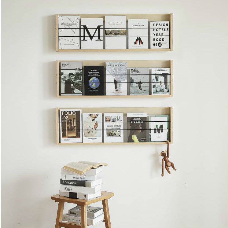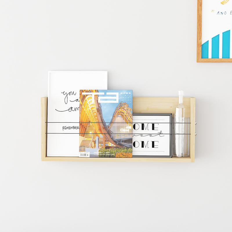 松木墙上置物架免钻孔现代简约装 实木学生原木书报架 饰组合壁挂式