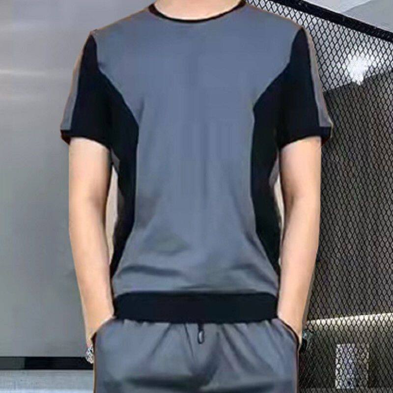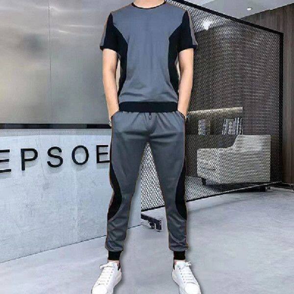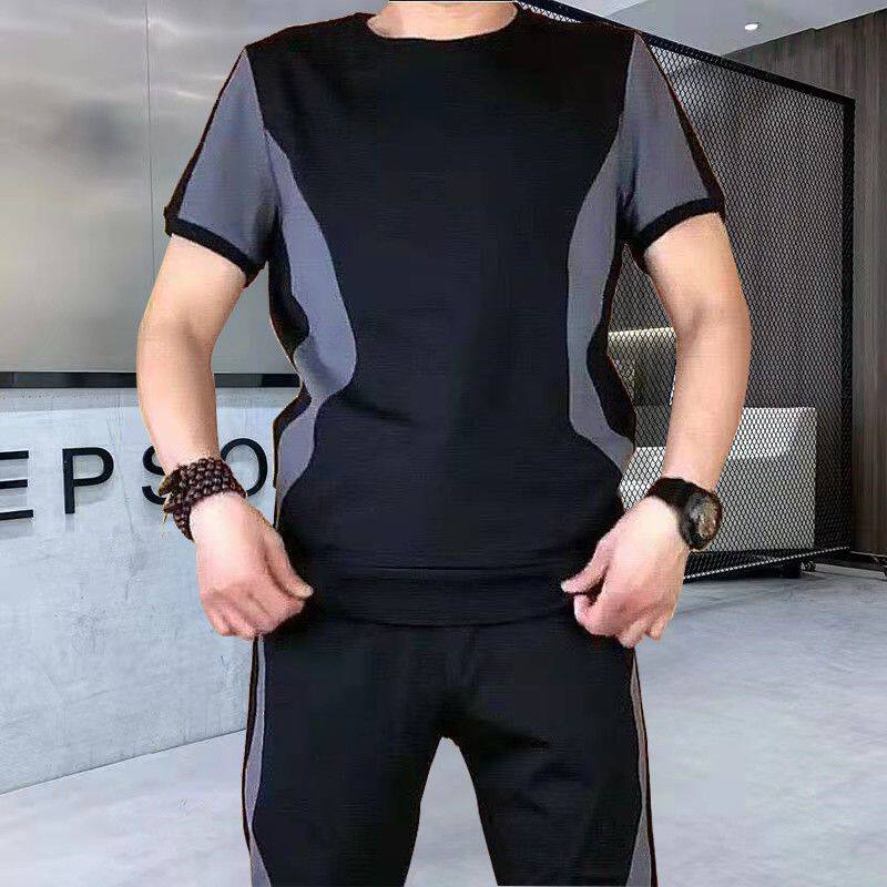 运动套装 潮流 夏季 衣服男抖音经典 长裤 套装 百搭拼接半袖 新品 男时尚