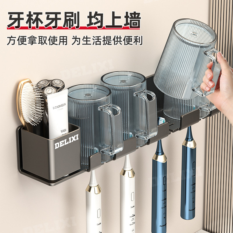 电动牙刷架 德力西牙刷置物架免打孔卫生间漱口杯刷牙杯收纳壁挂式