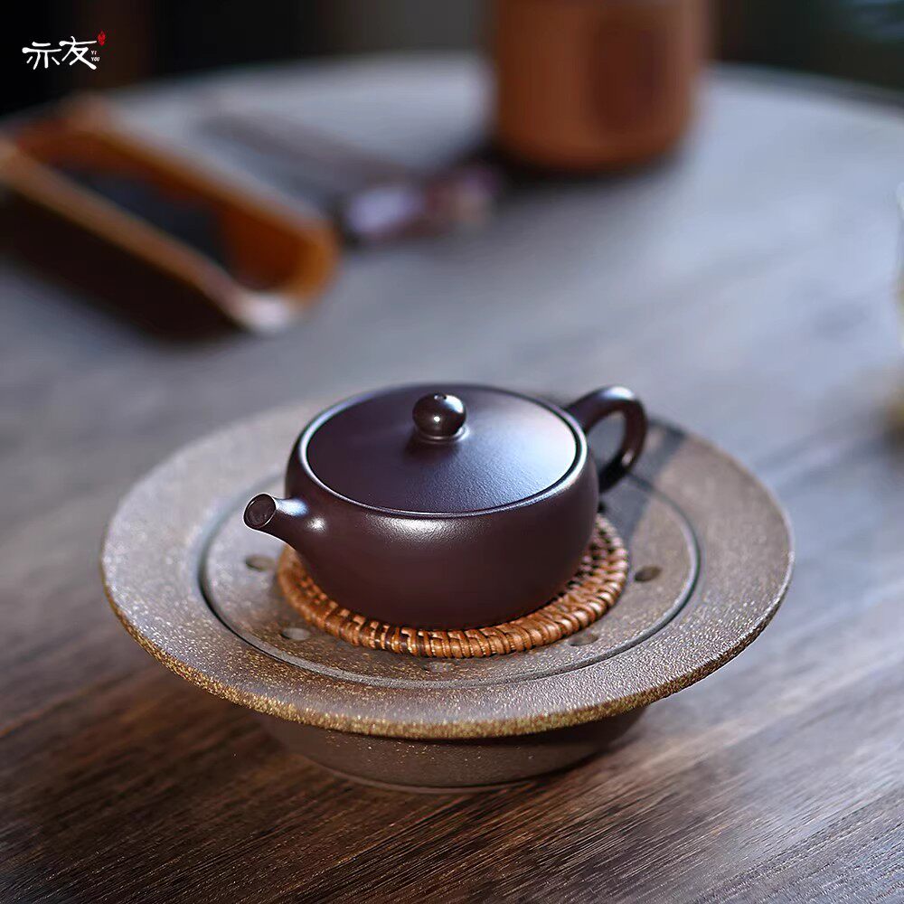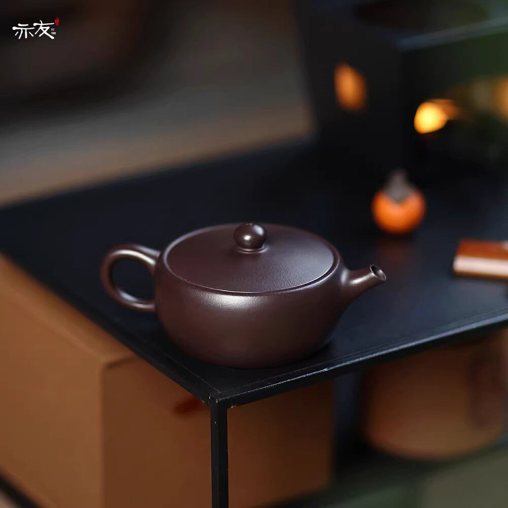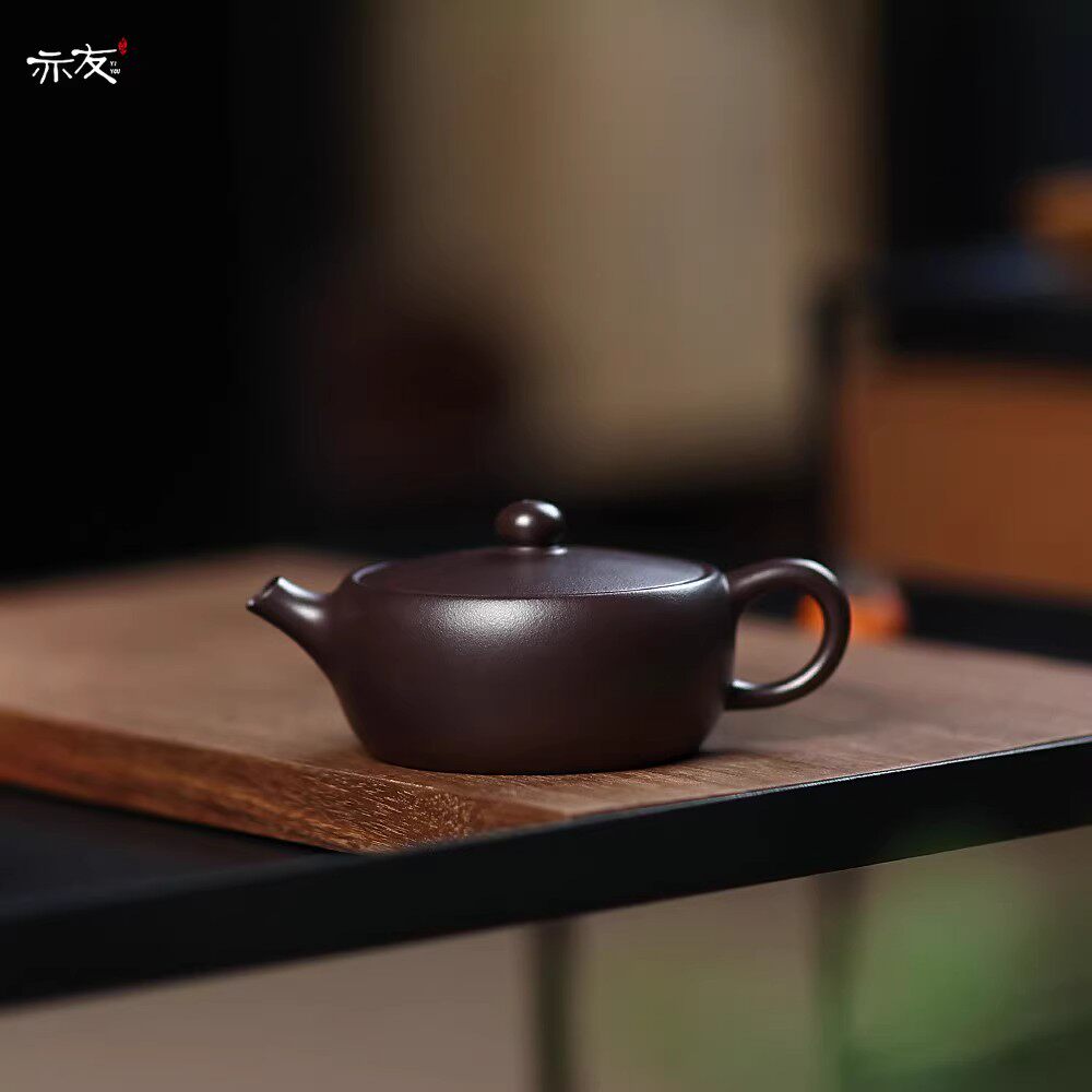正宗宜兴紫砂壶名家手工紫泥扁韵汉瓦壶小容量家用泡茶壶 迹遇由