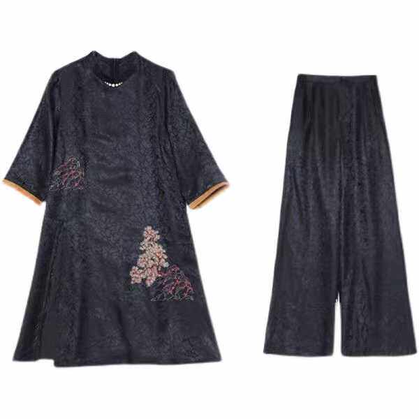 为您提供商品高端品牌洋气中老年妈妈阔腿裤 两件套 国风旗袍仿香云纱套装 新中式的详细介绍,