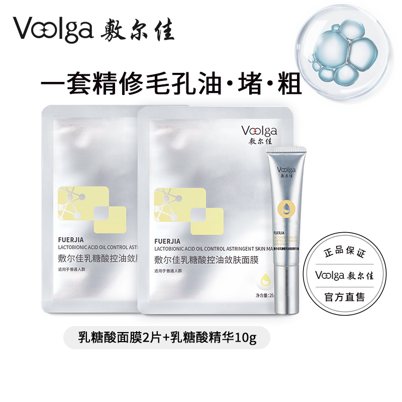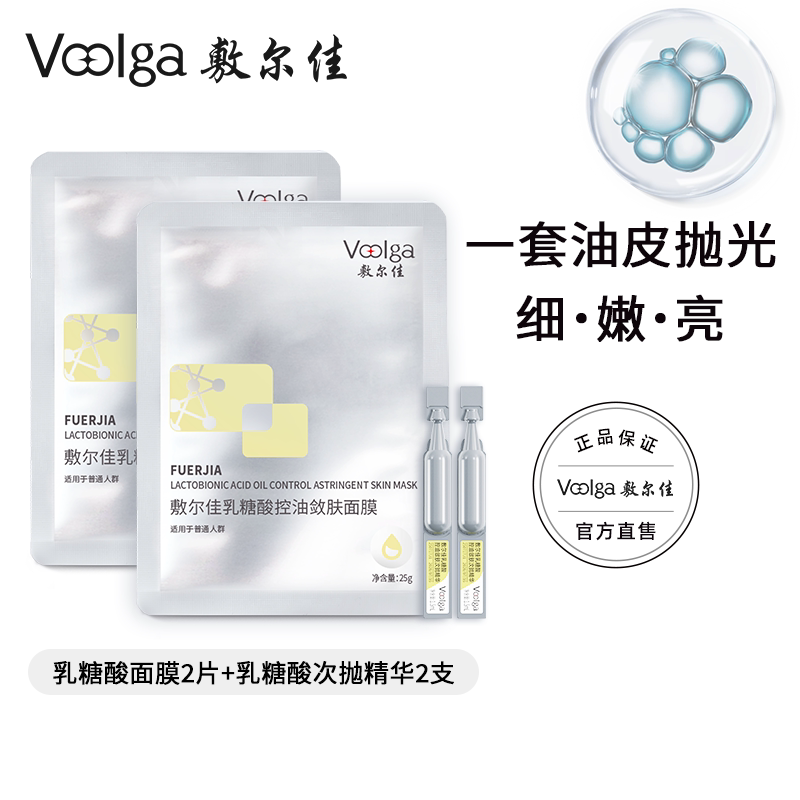 敷尔佳乳糖酸控油面膜2片祛痘收缩毛孔痘肌官方正品 百亿补贴