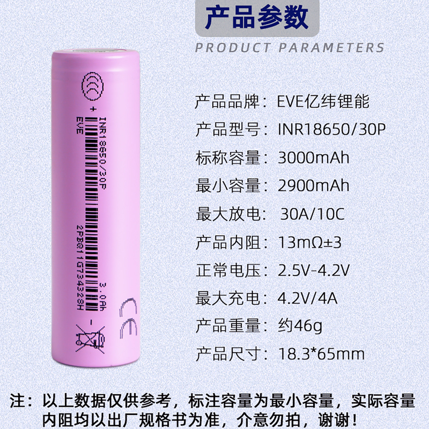 为您提供商品全新亿纬18650锂电池4.2V大容量3000mAh电动工具动力电芯10C放电的详细介绍,