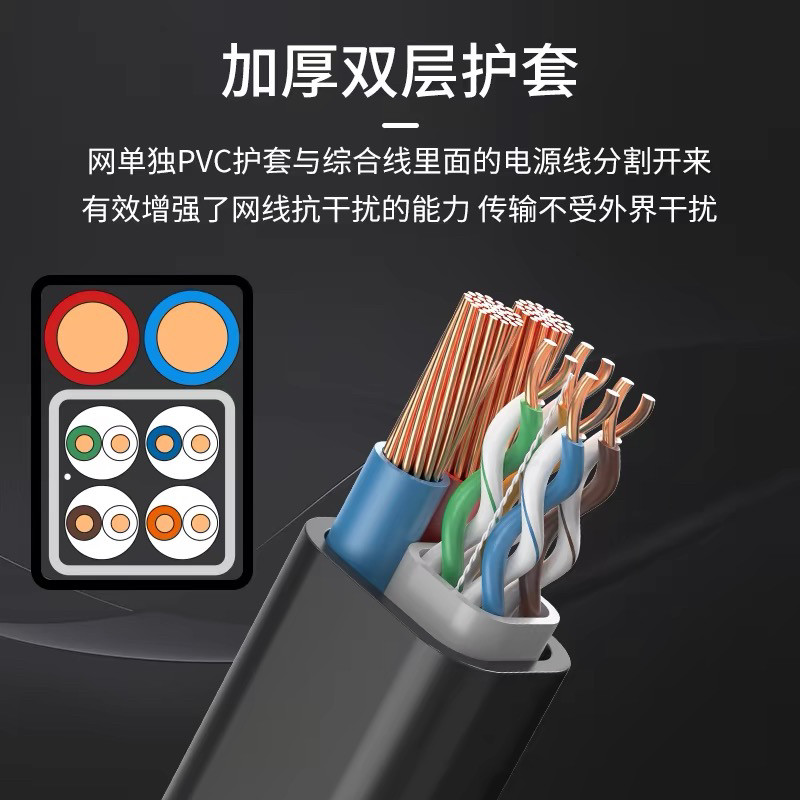 网线千兆家用超六6五5类电脑路由器宽带连接线摄像头成品网络线扁