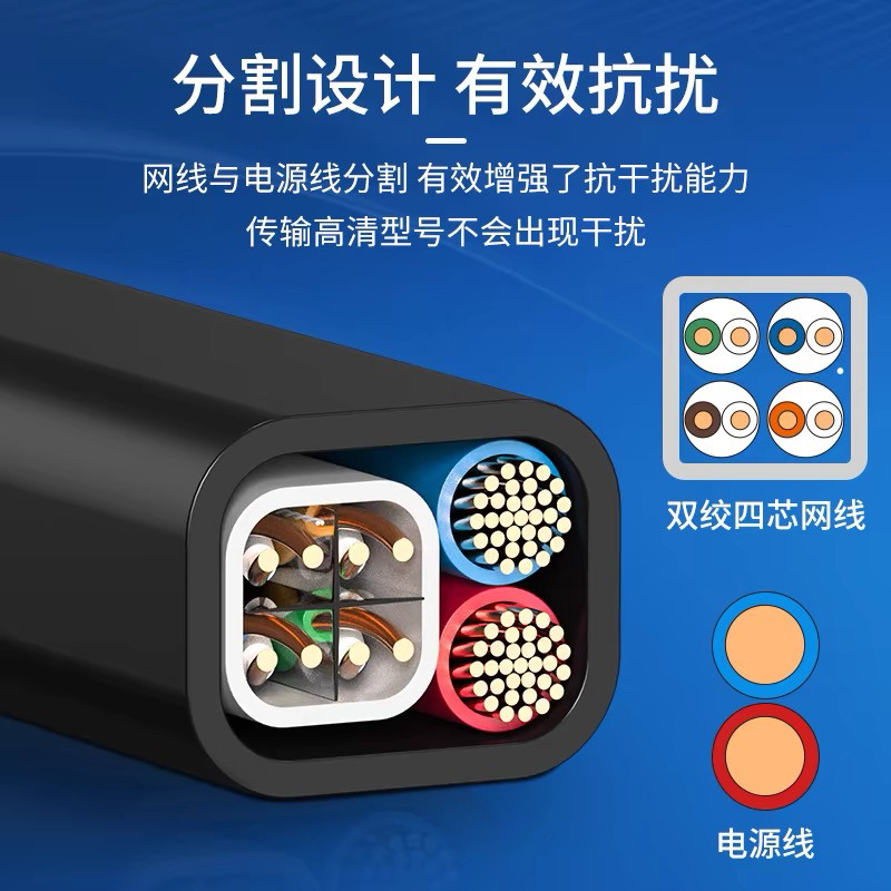 安普4芯8芯带电源一体线纯无氧铜监控网络线室外复合线综合线
