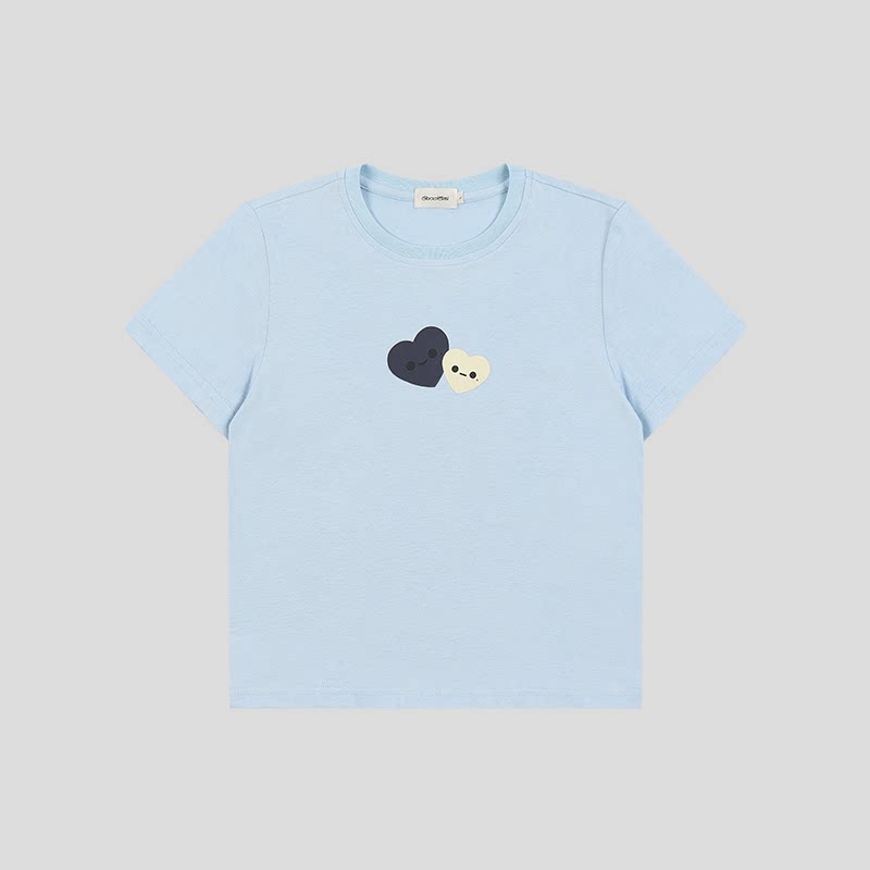 T恤 GOODBAI双色表情爱心印花正肩短袖