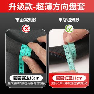 汽车方向盘把套套四季 通用防滑吸汗超薄方向盘D型透气真皮薄款